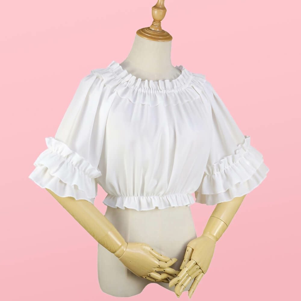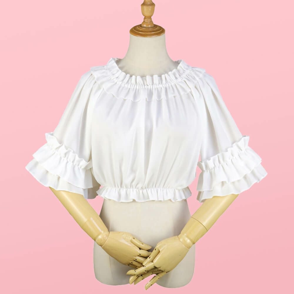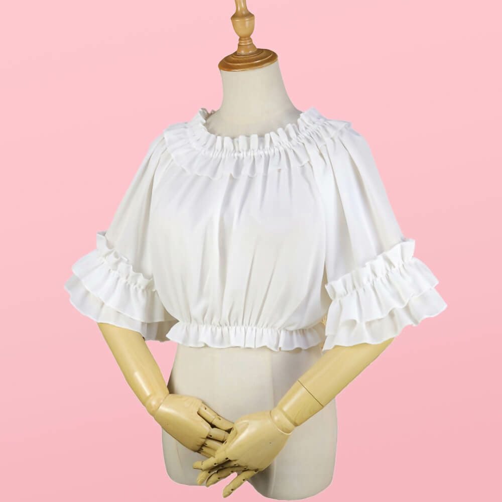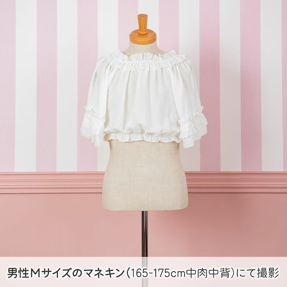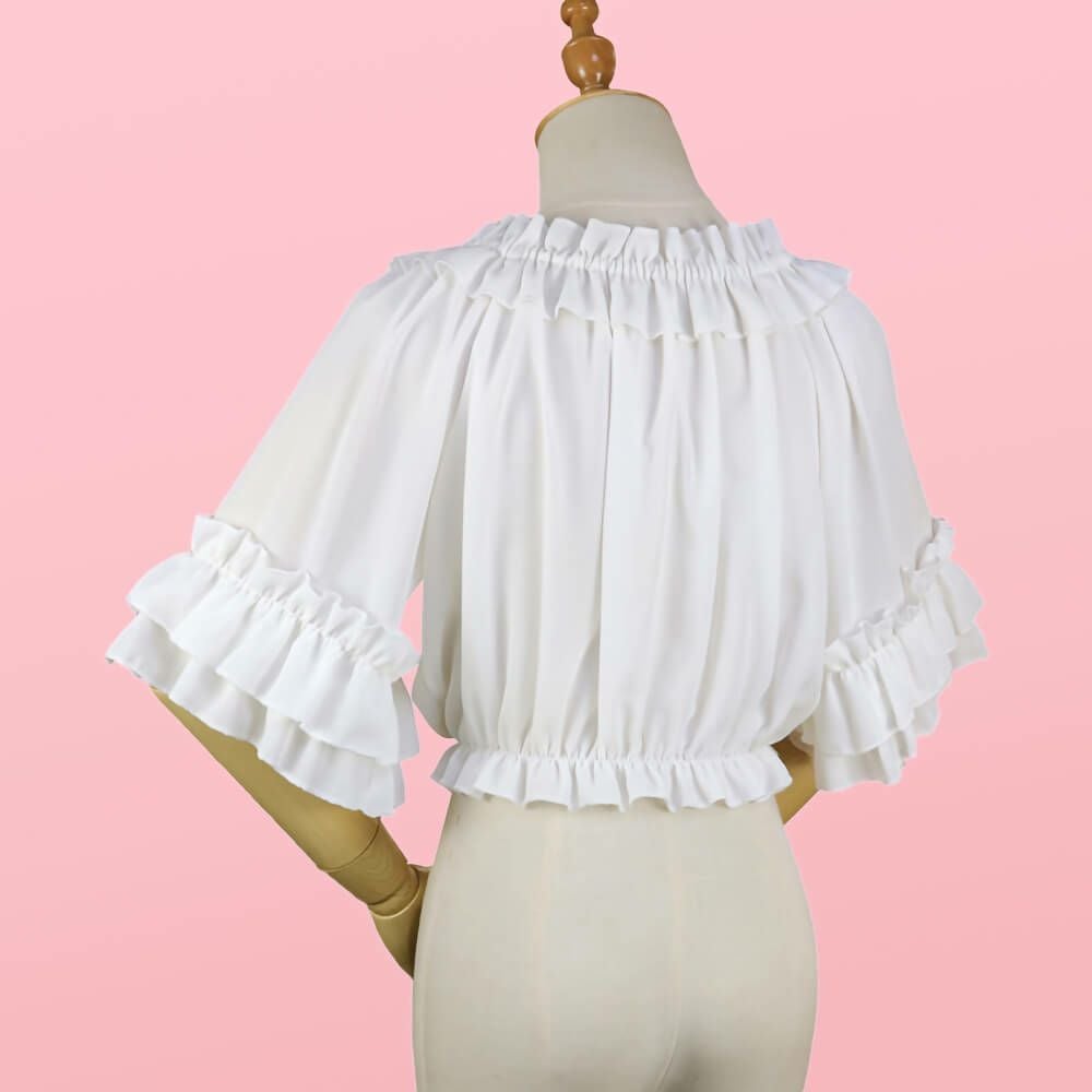 半袖フリルシフォンブラウス 白