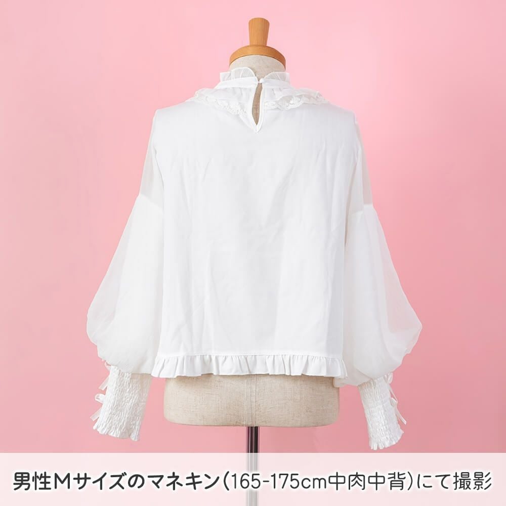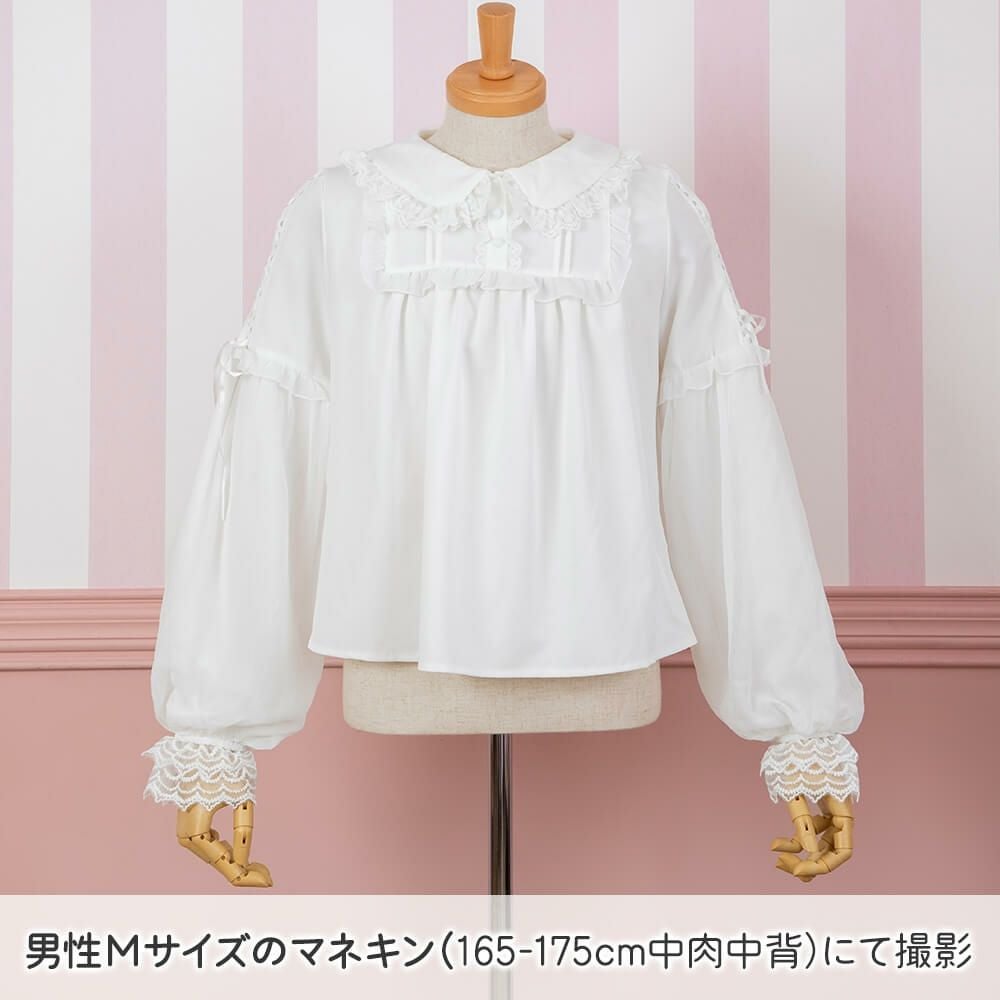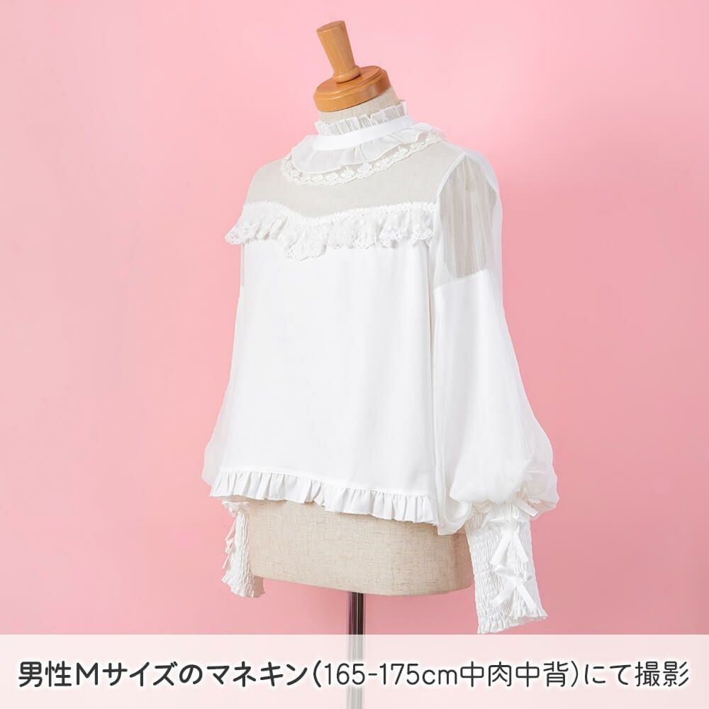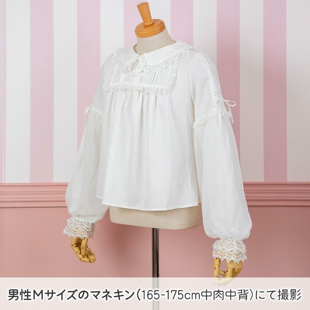 丸襟レースふわふわ長袖ブラウス 白