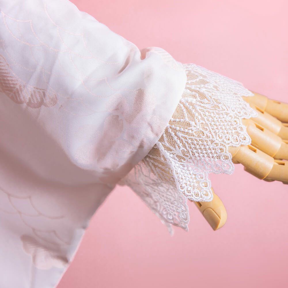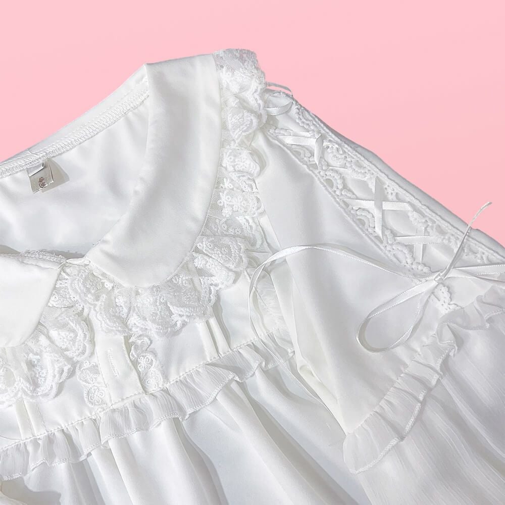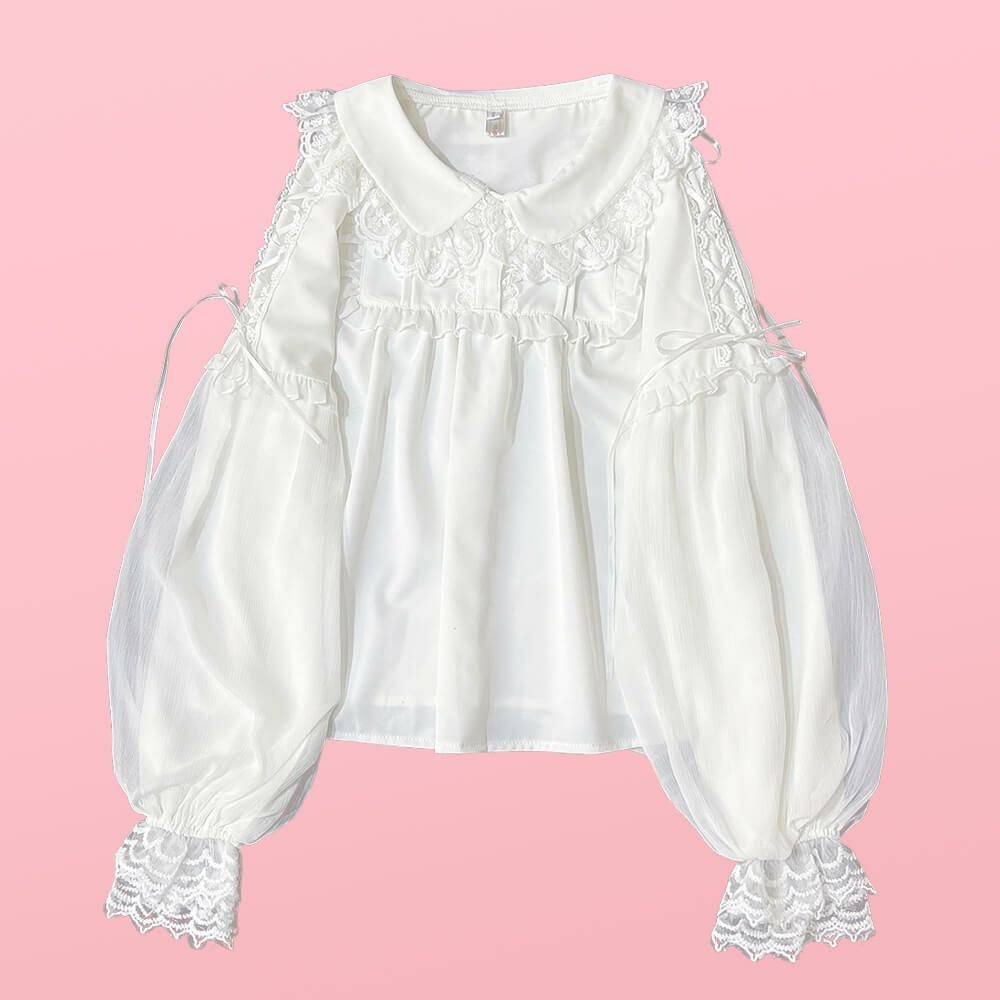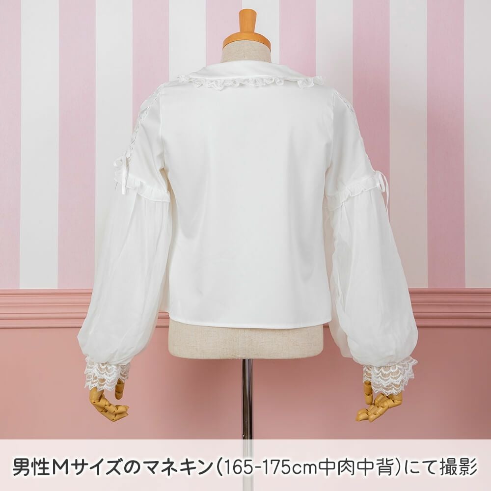 丸襟レースふわふわ長袖ブラウス 白