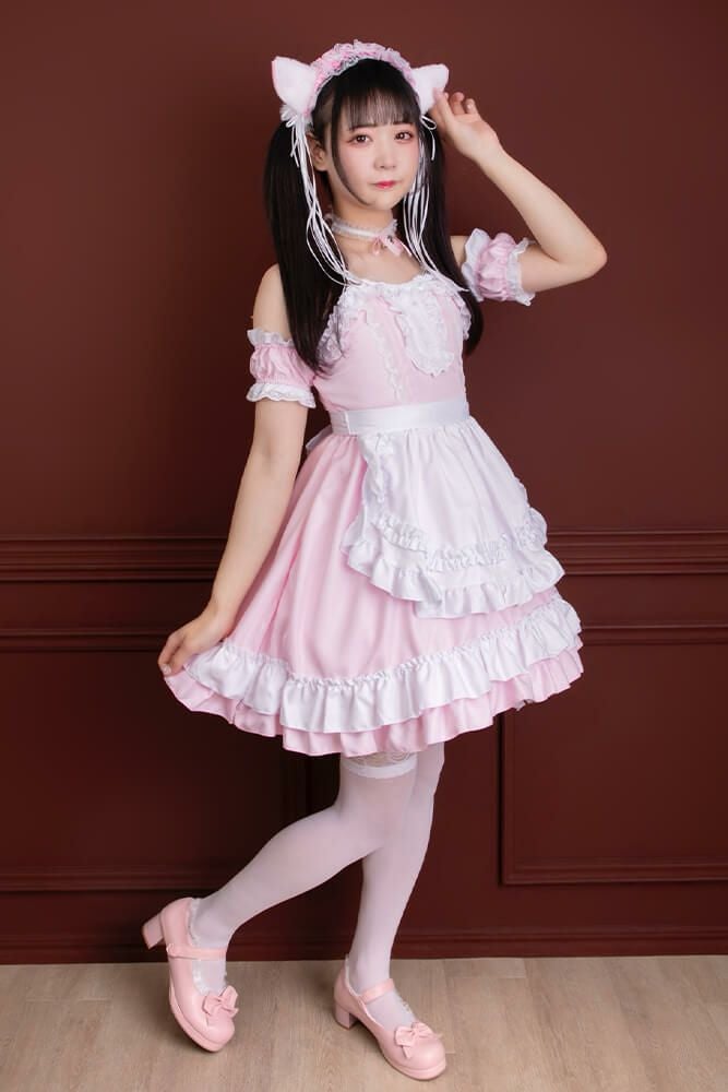 肩出し猫耳メイド服7点セット