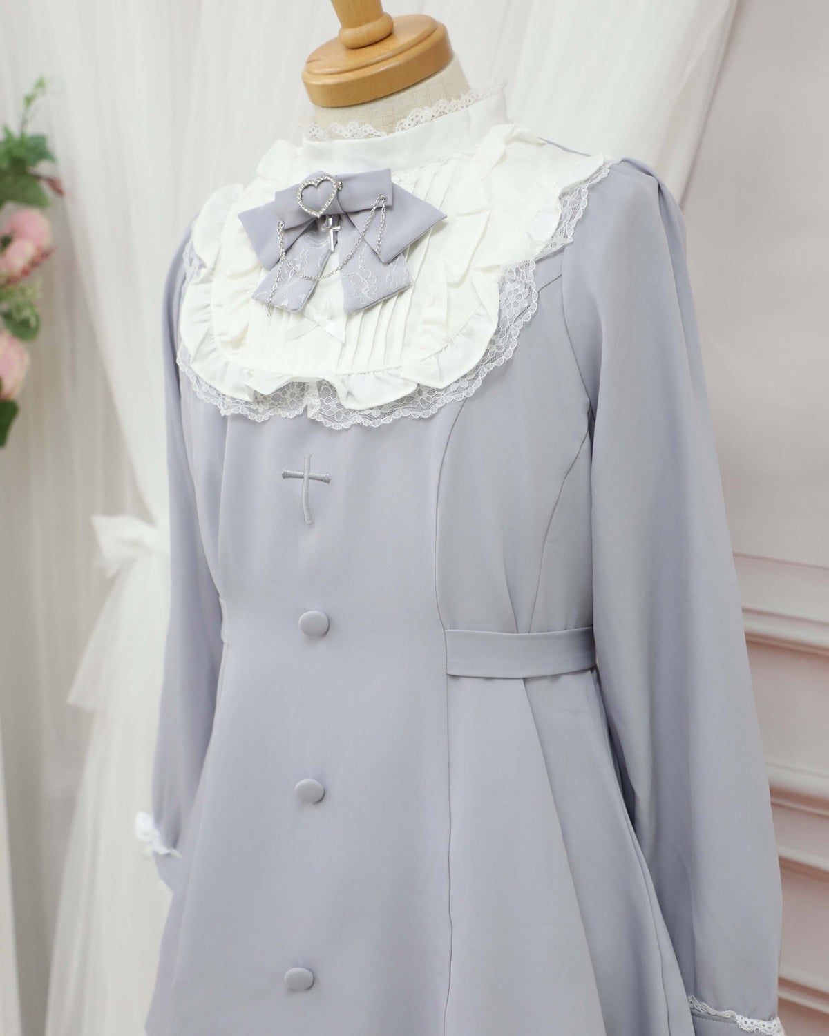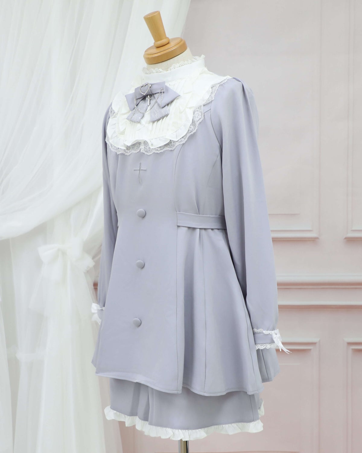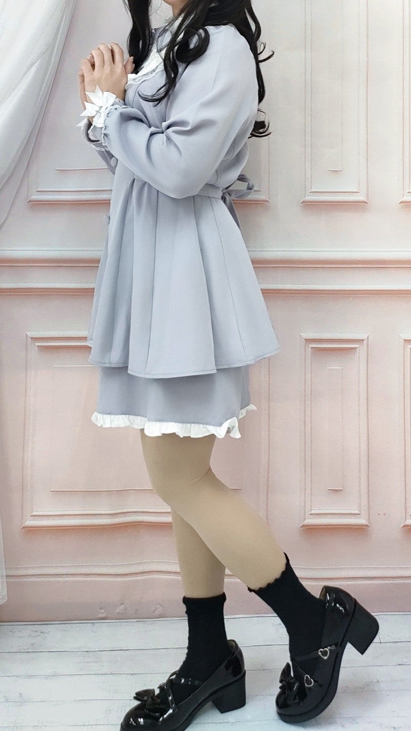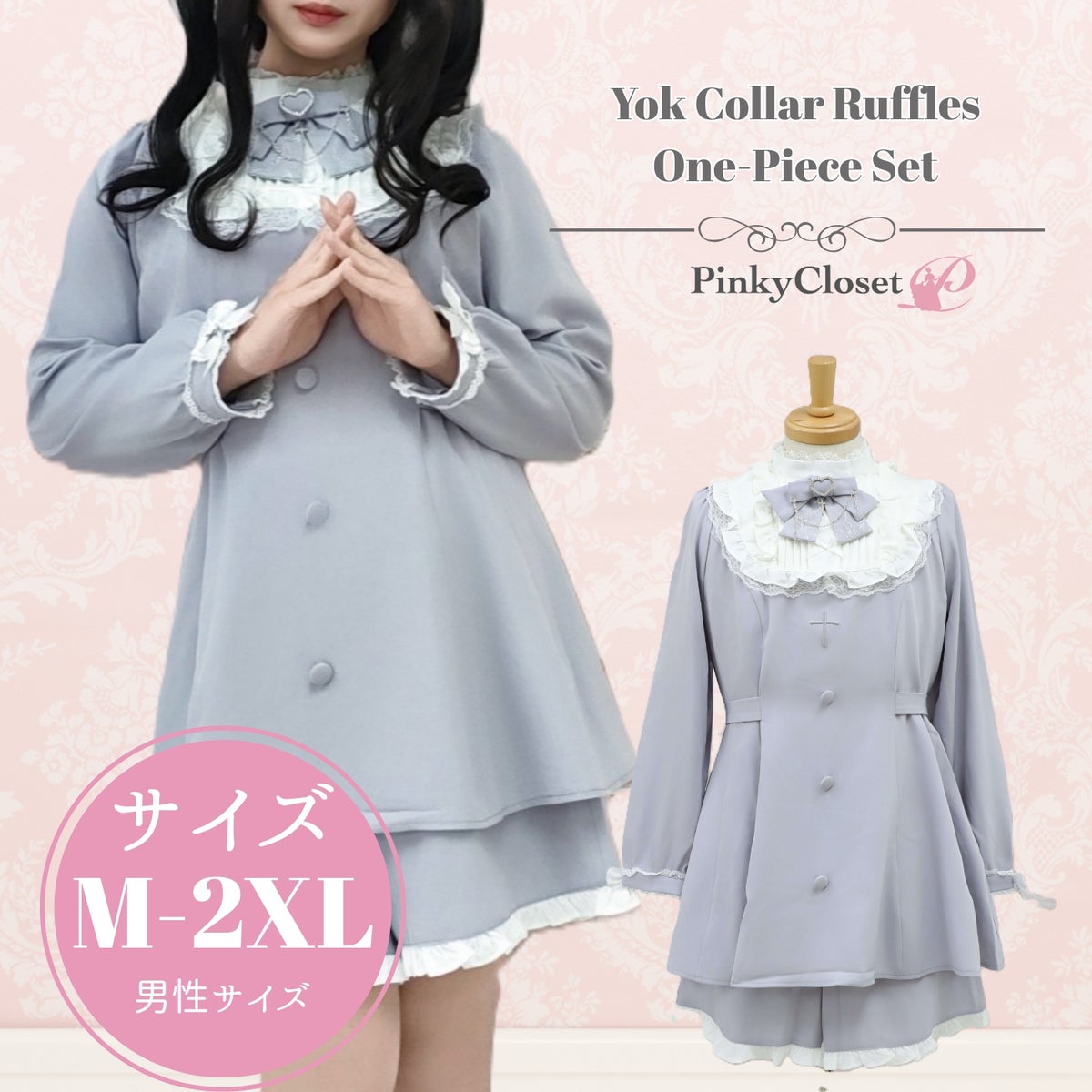 ヨークカラーフリルワンピース セットアップ ブルーグレー
