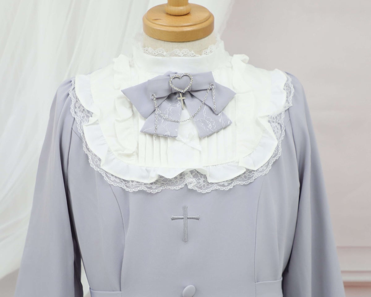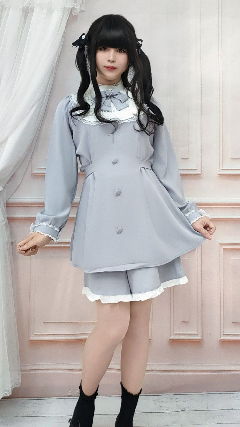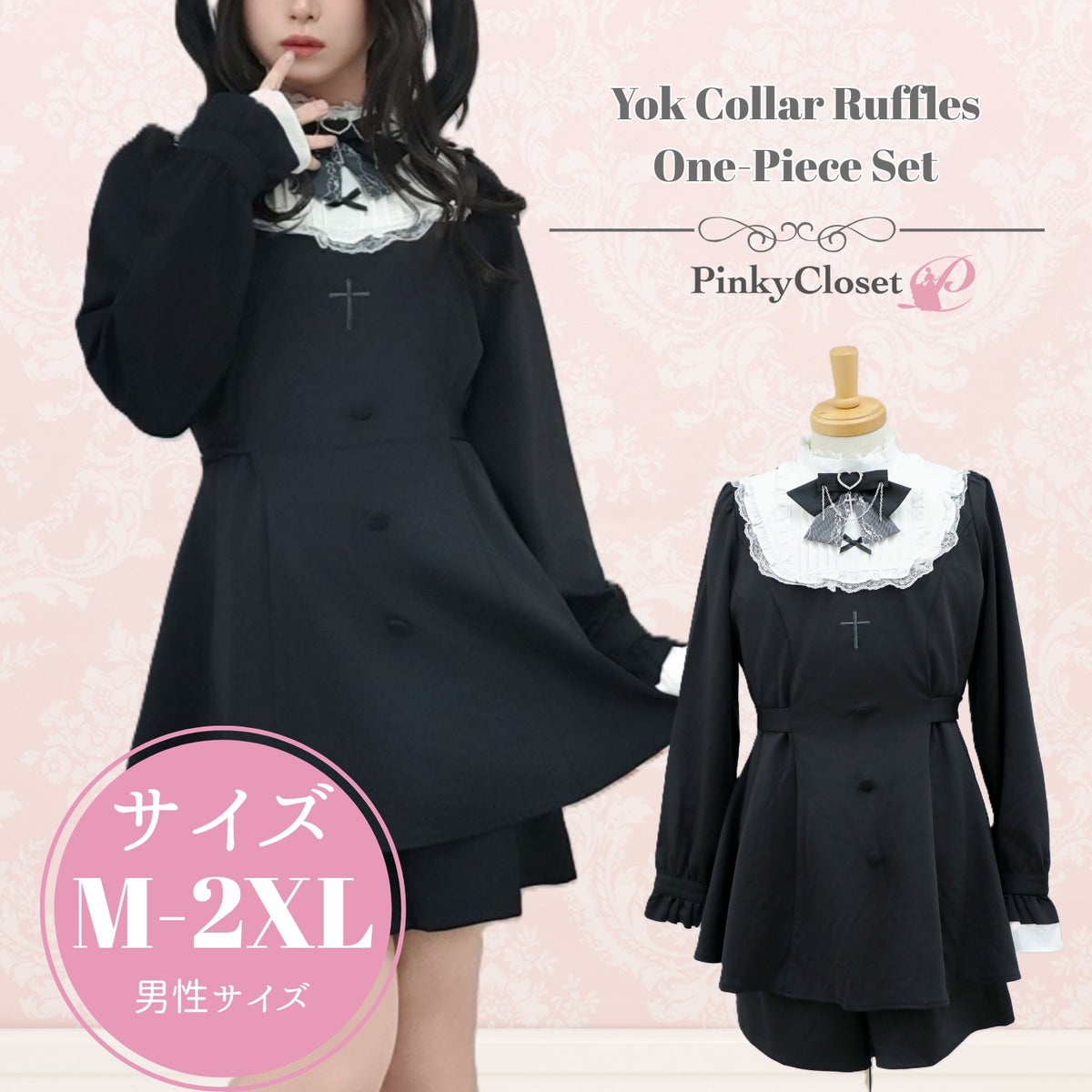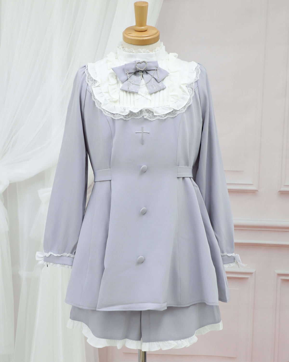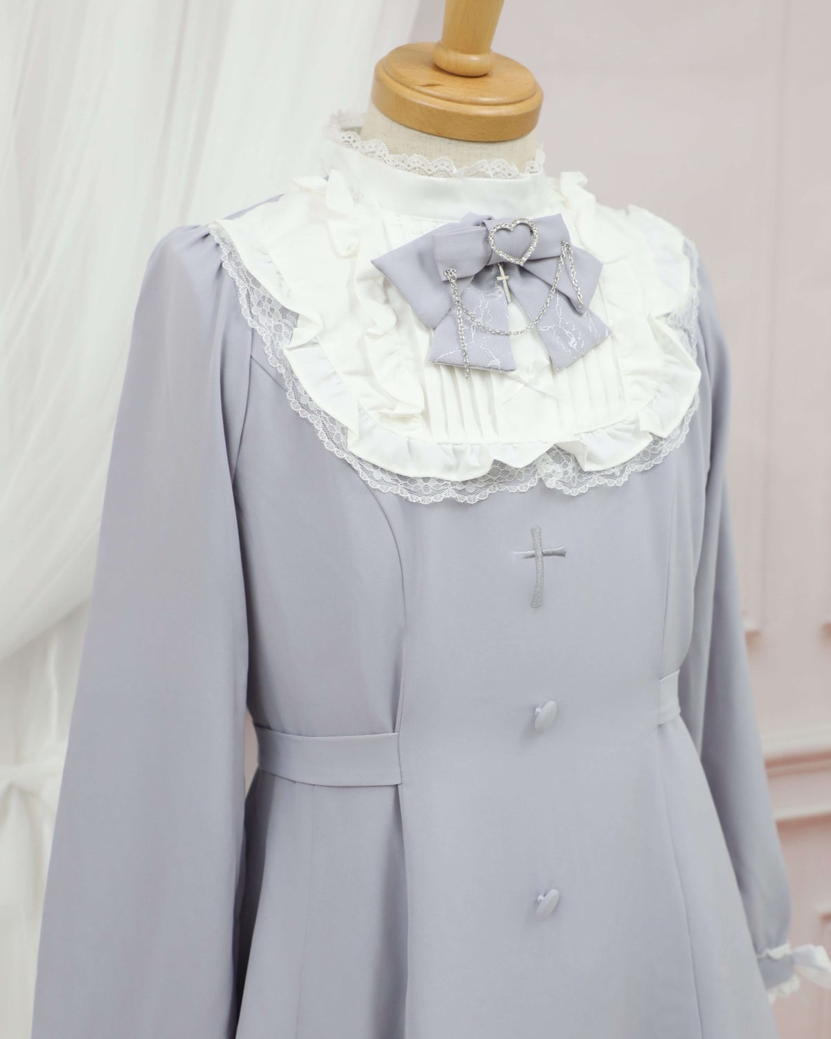 ヨークカラーフリルワンピース セットアップ ブルーグレー