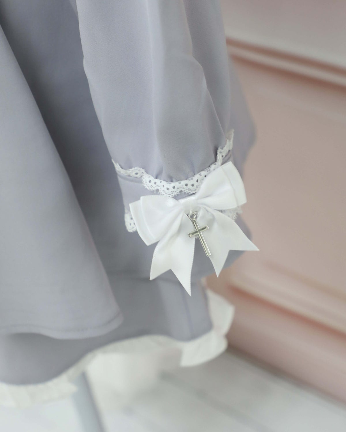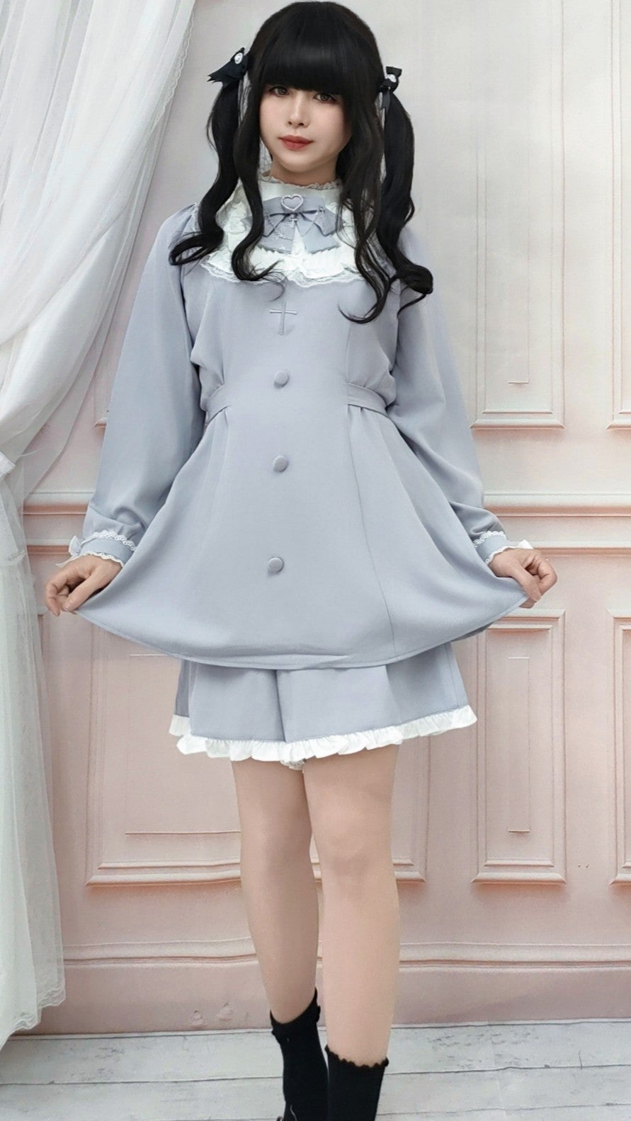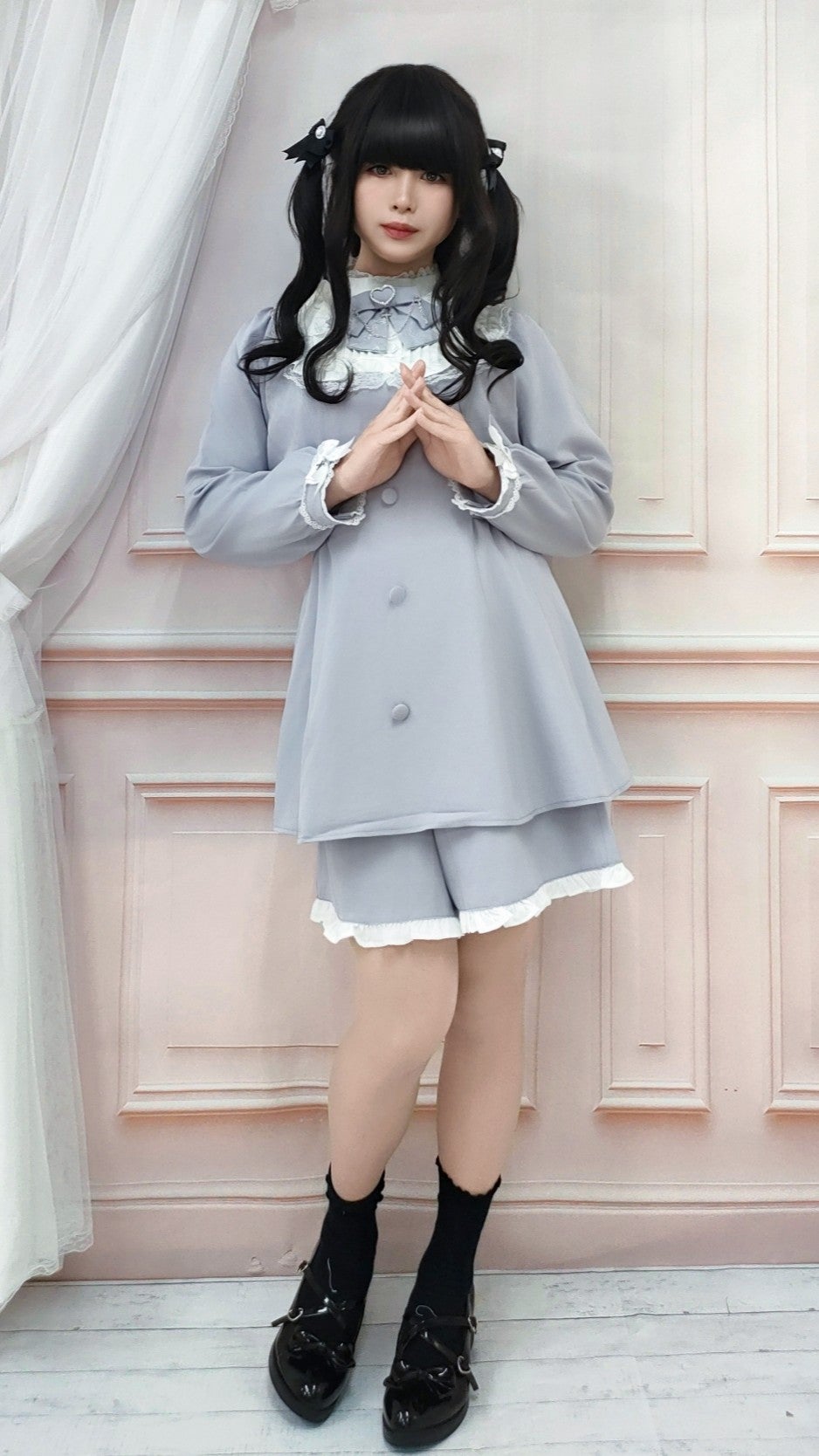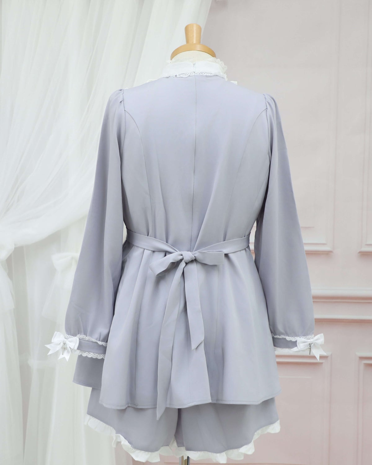 ヨークカラーフリルワンピース セットアップ ブルーグレー
