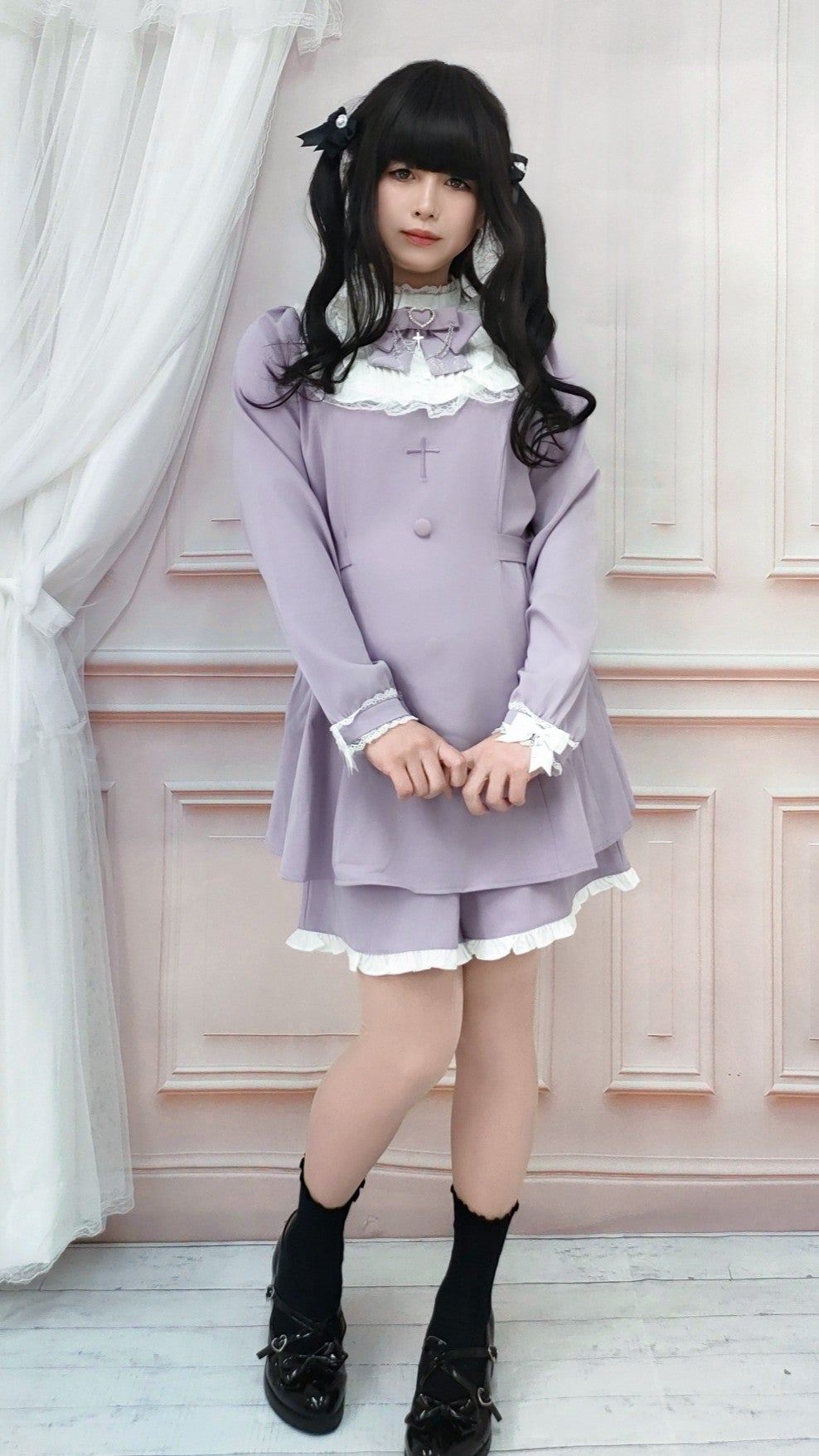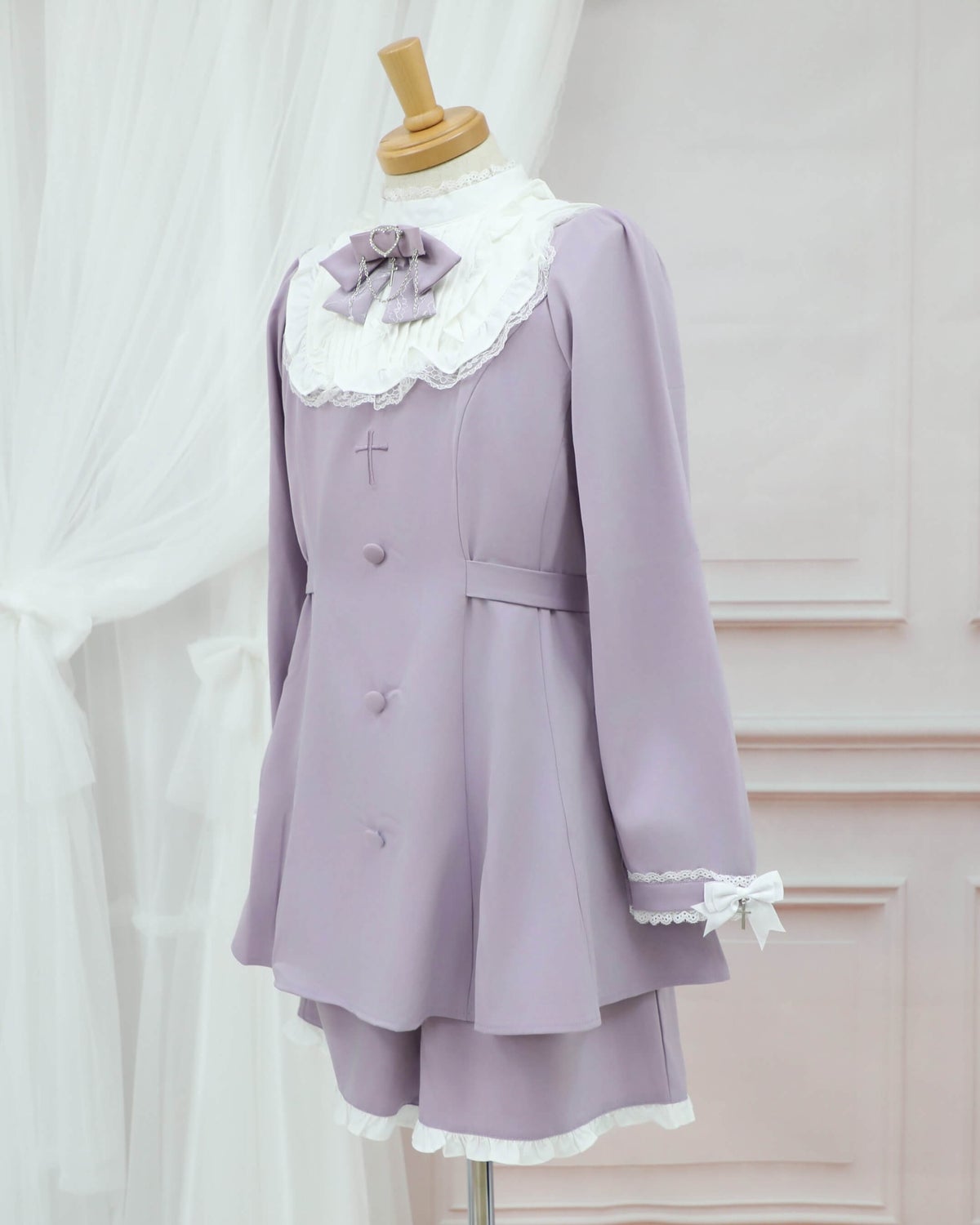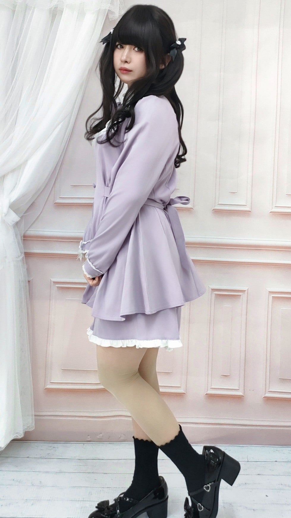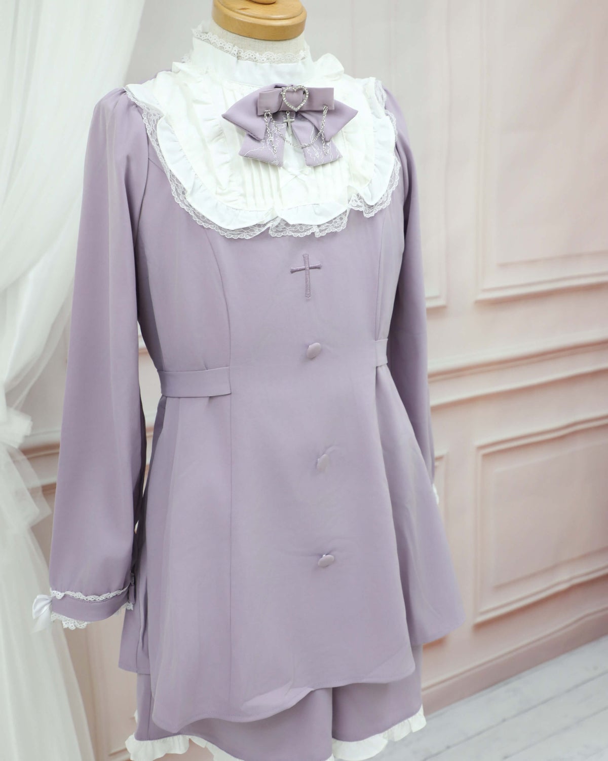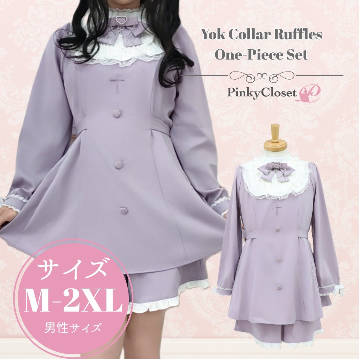 ヨークカラーフリルワンピース セットアップ ラベンダー