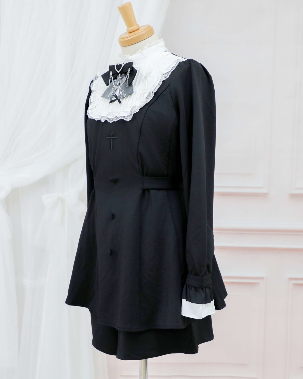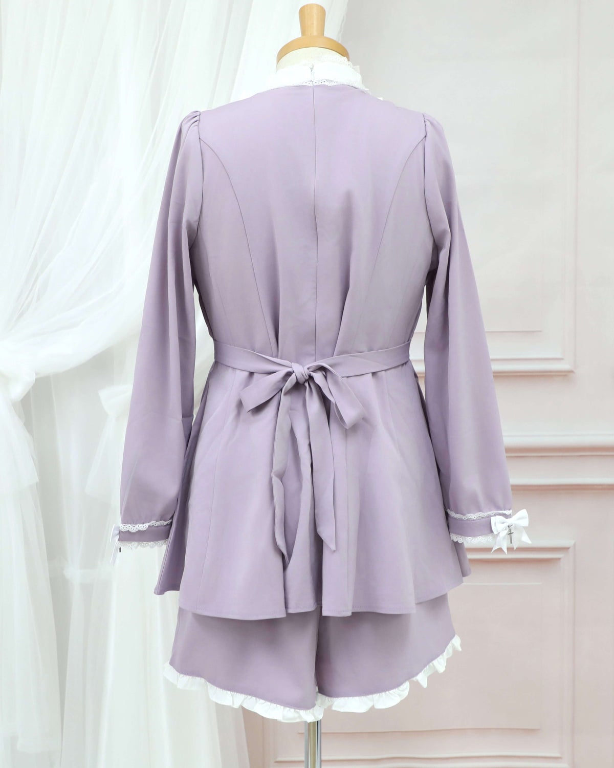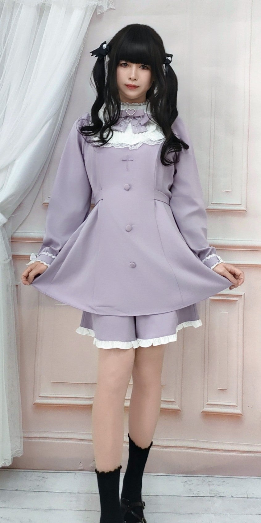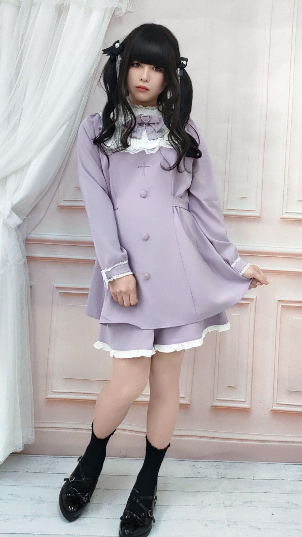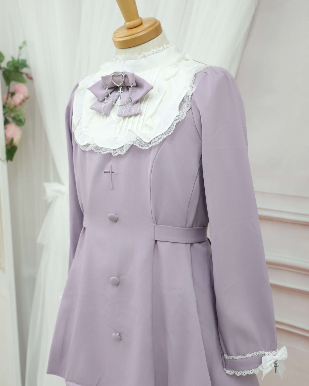 ヨークカラーフリルワンピース セットアップ ラベンダー