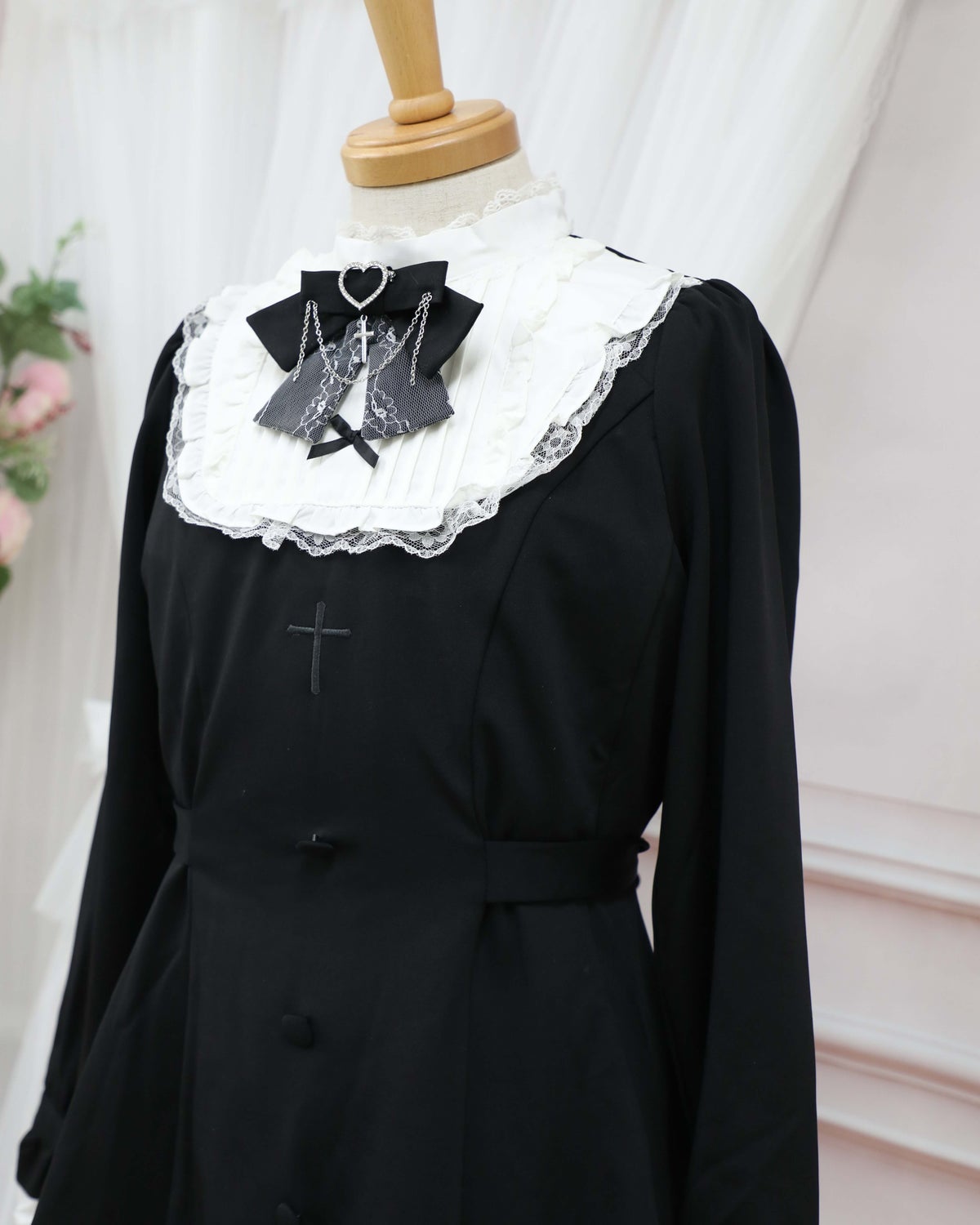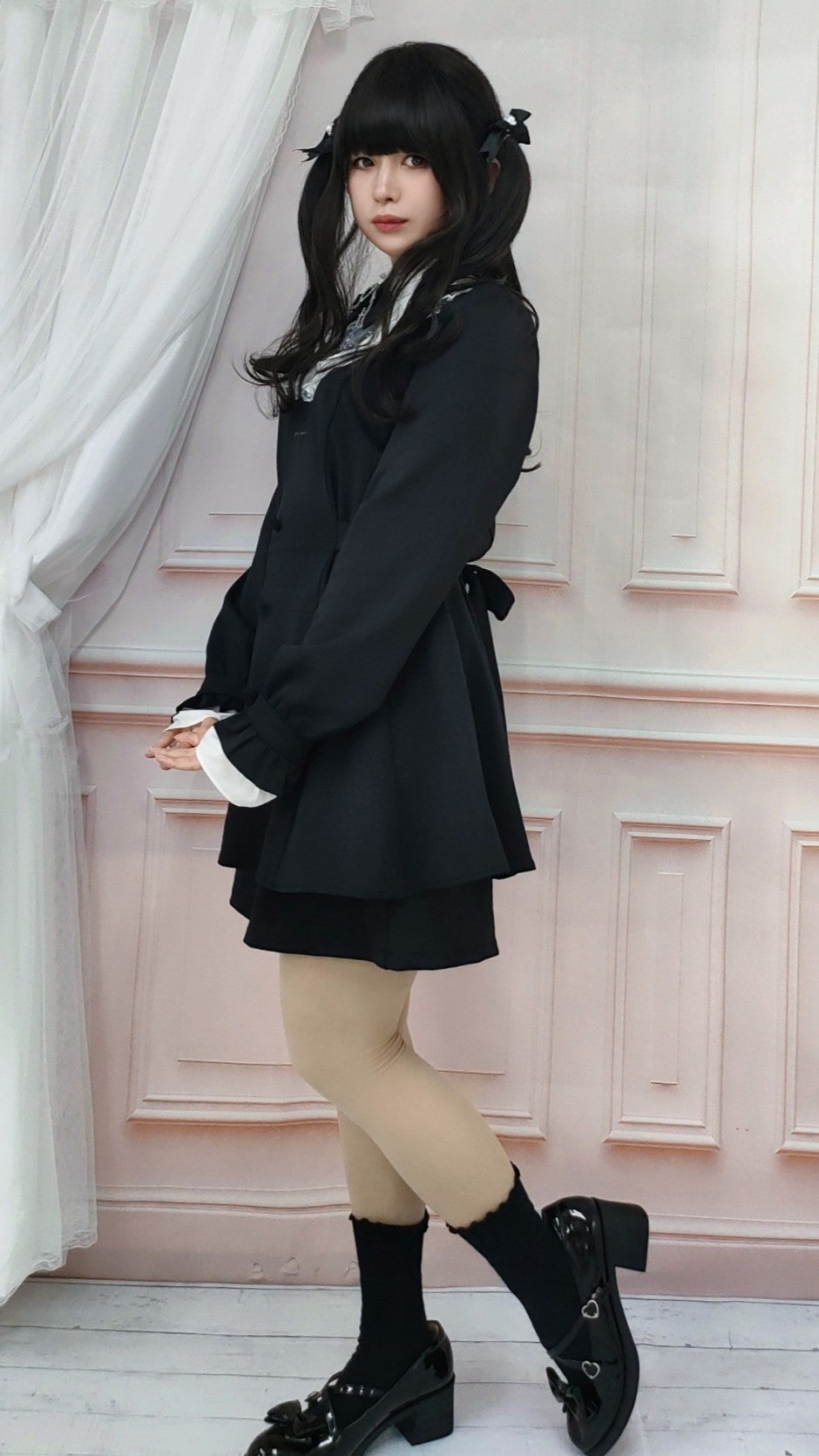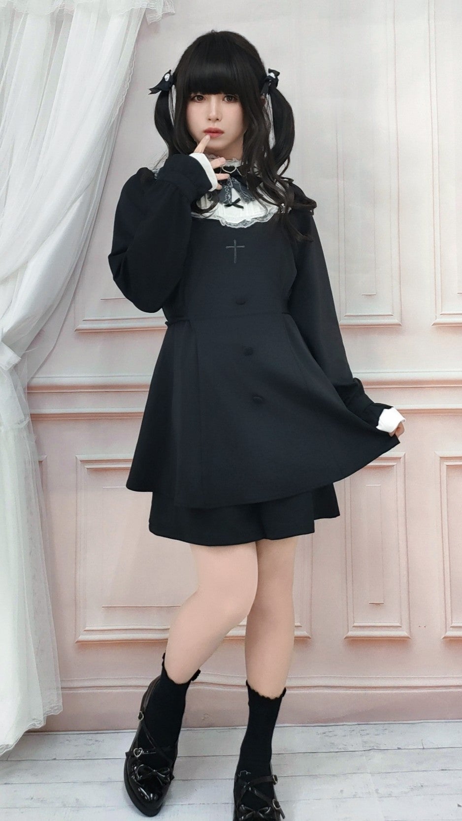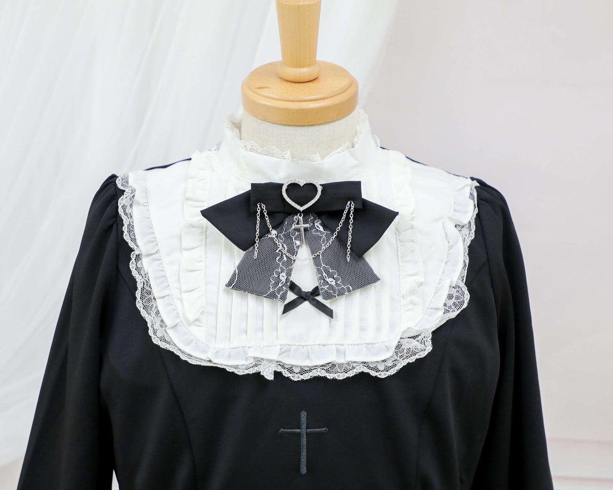 ボウタイジャンパースカート風ワンピース ブラック フリーサイズ