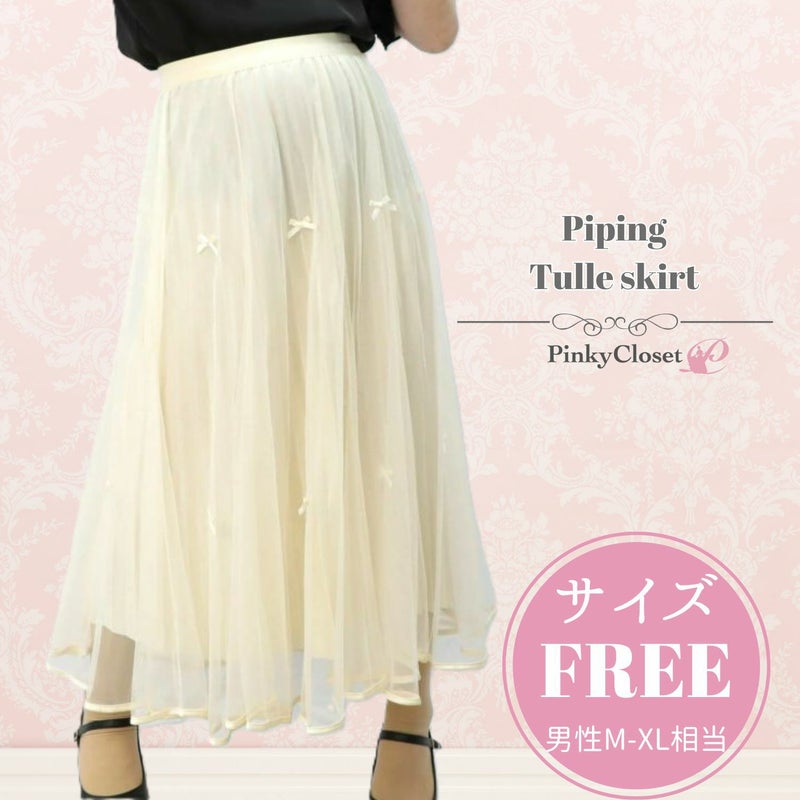 3. パイピングリボンチュールスカート 白 フリーサイズ