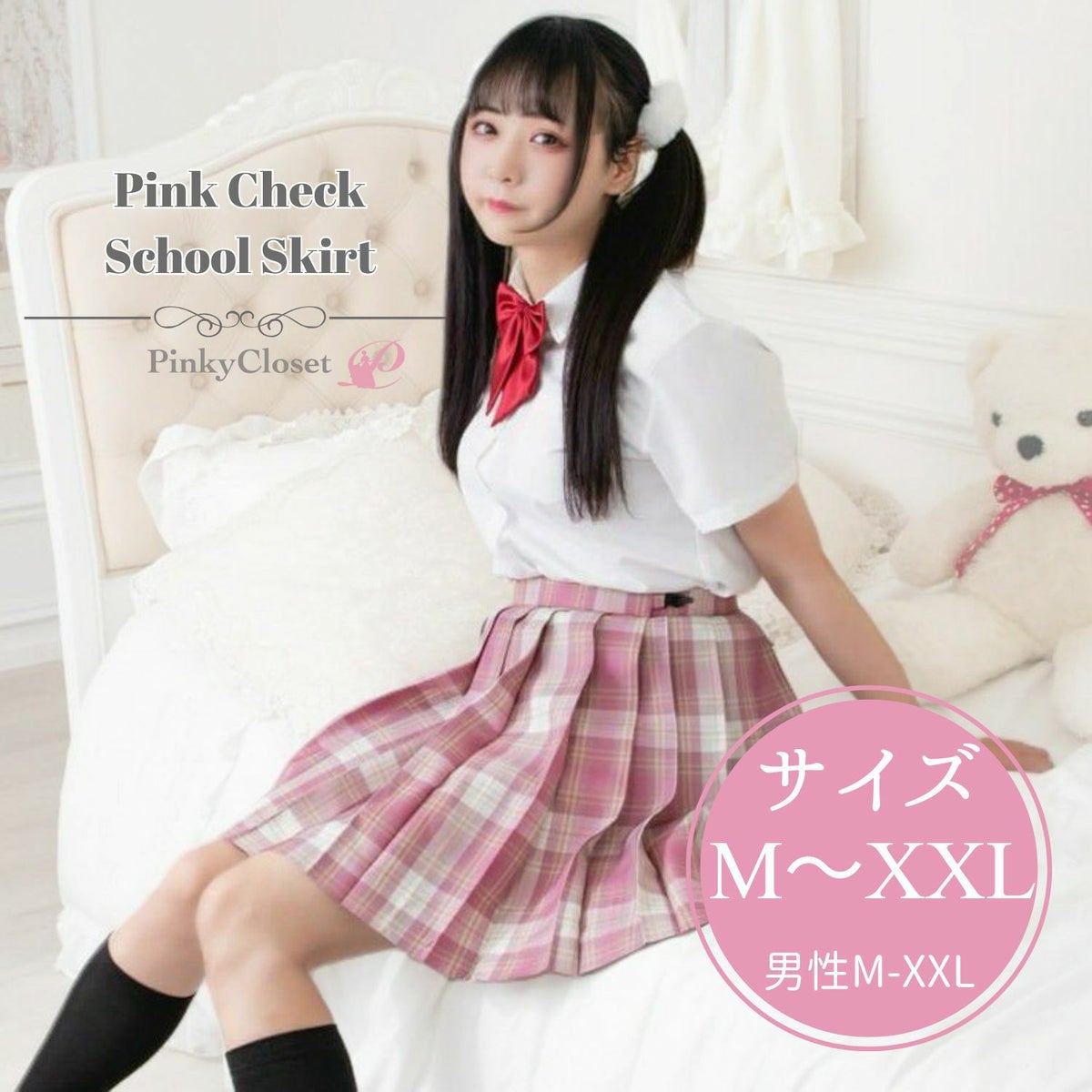 ピンクチェック柄 スクールスカート