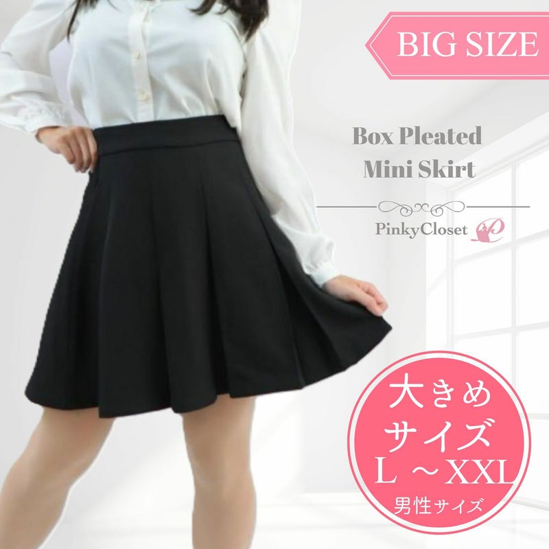 【大きめサイズ】ボックスプリーツミニスカート 黒
