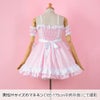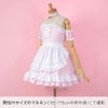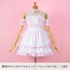 ①ワンピース+袖パーツ、②エプロン、③レースチョーカー、④オリジナルボリュームパニエ、⑤靴下、⑥カチューシャ、⑦肩紐の7点セット