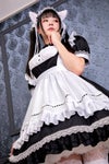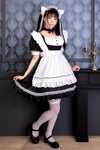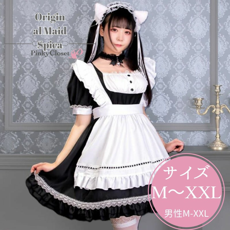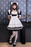 ①ワンピース、②エプロン、③鈴付きレースチョーカー、④オリジナルボリュームパニエ、⑤靴下、⑥猫耳カチューシャ、の6点セット