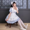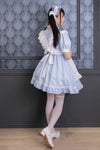 ①ワンピース、②エプロン、③鈴付きレースチョーカー、④オリジナルボリュームパニエ、⑤靴下、⑥猫耳カチューシャ、の6点セット