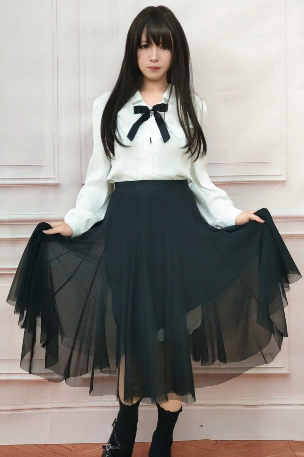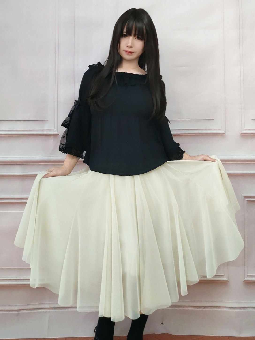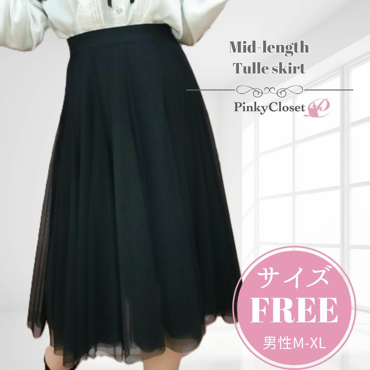 ミドル丈チュールスカート 黒 フリーサイズ