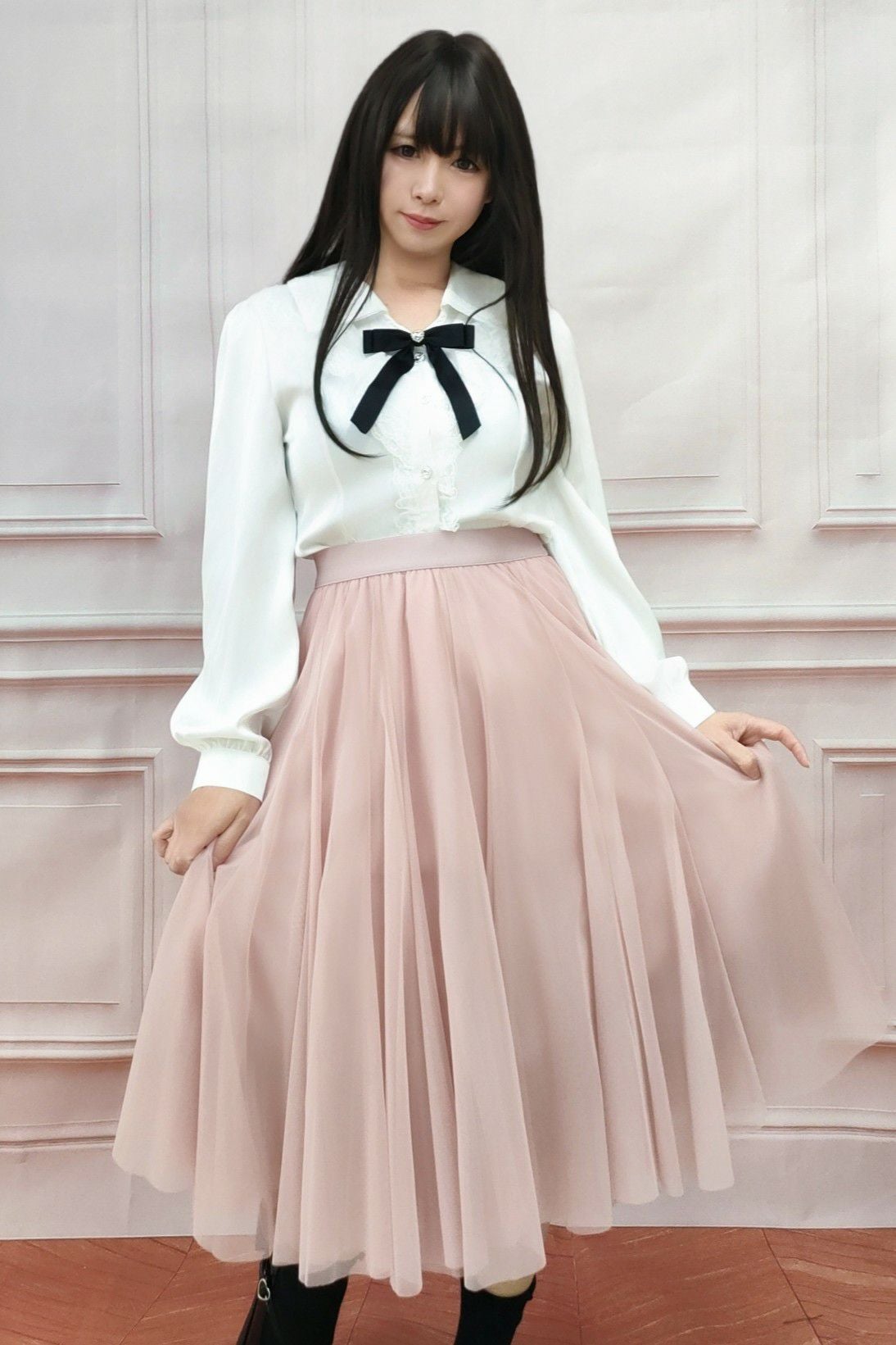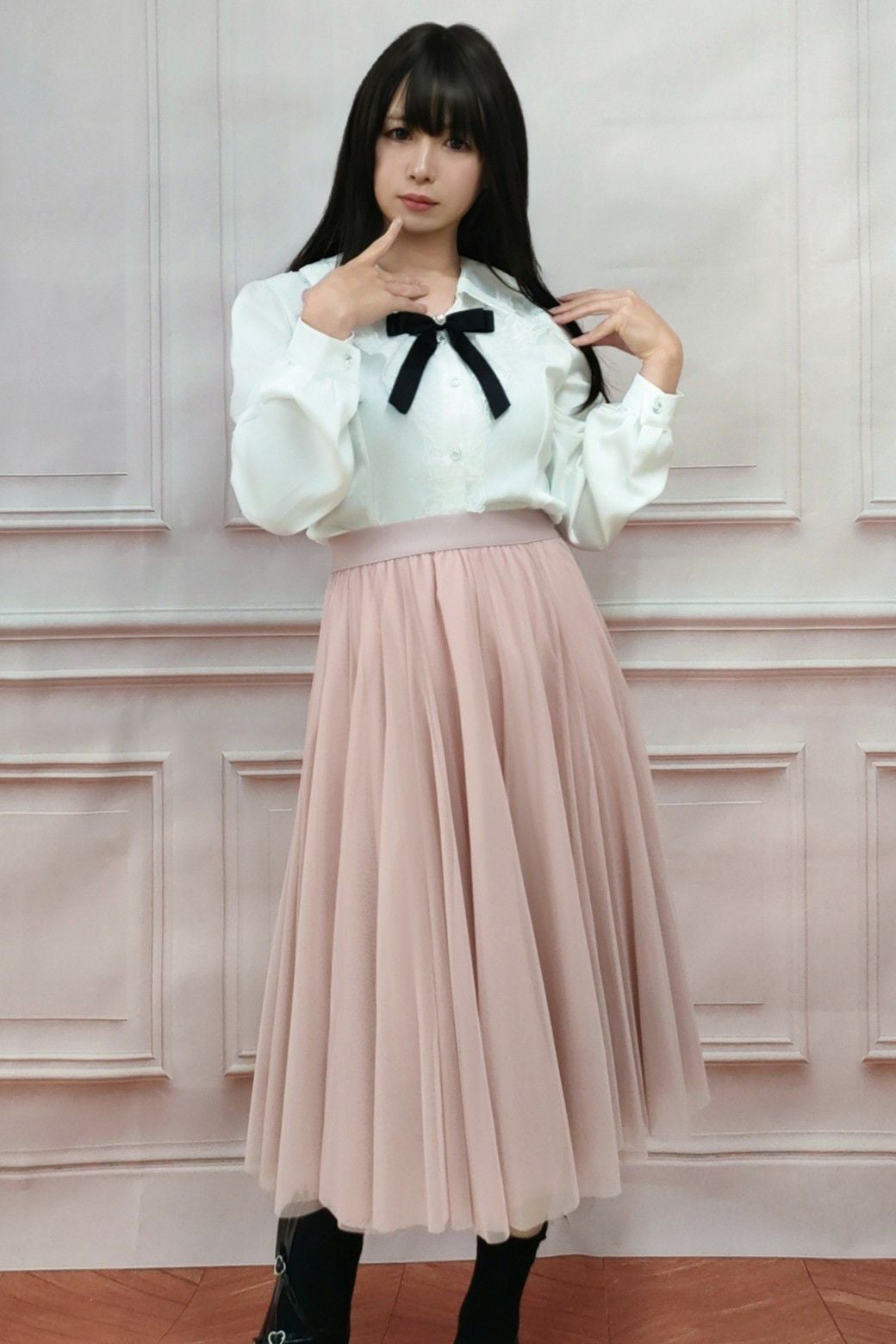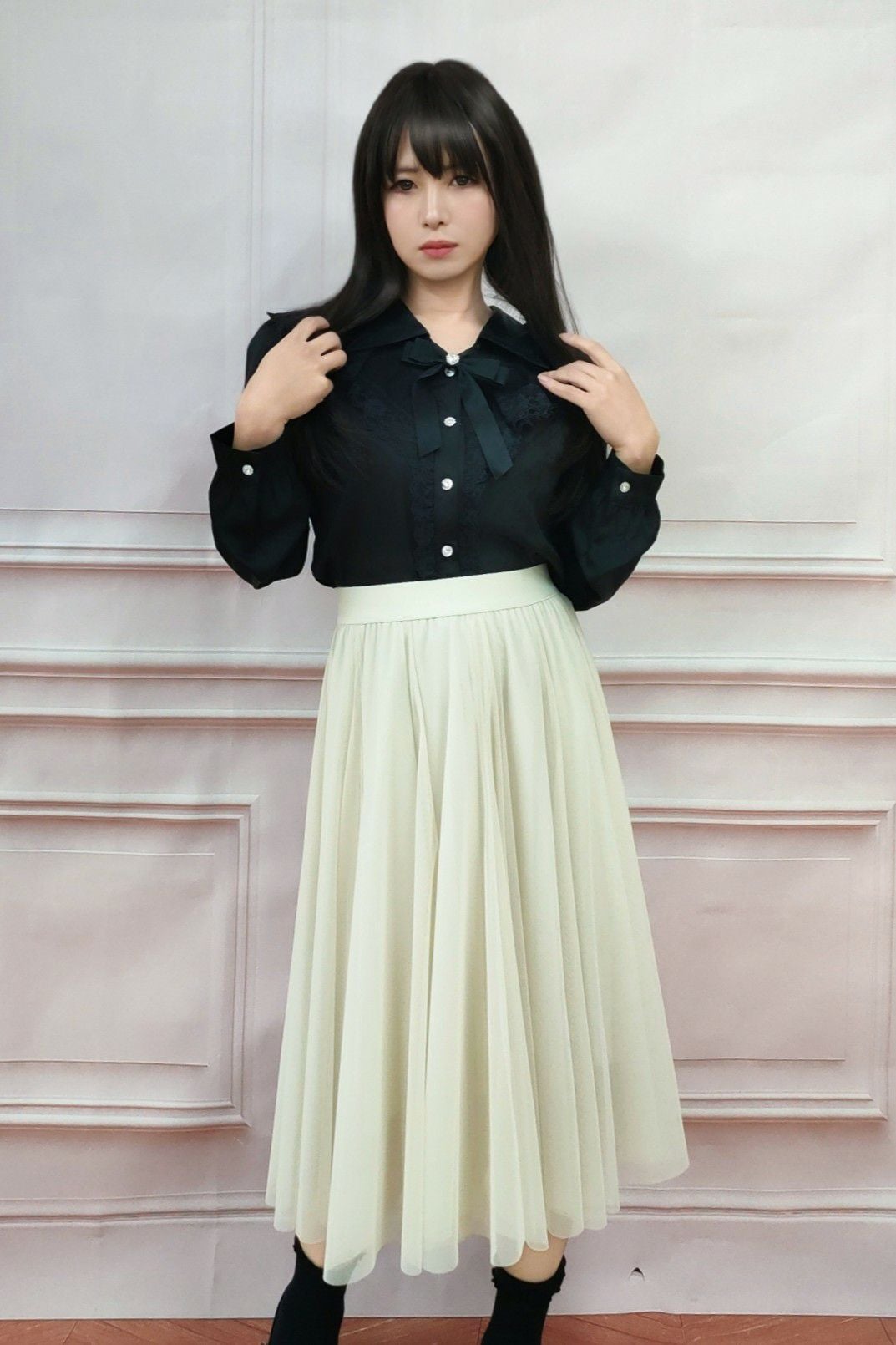 ミドル丈チュールスカート 黒 フリーサイズ
