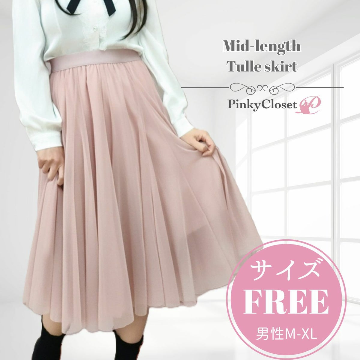 ミドル丈チュールスカート ピンク フリーサイズ