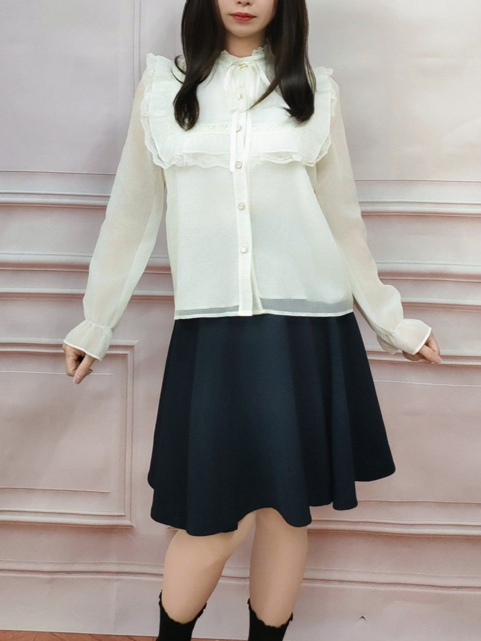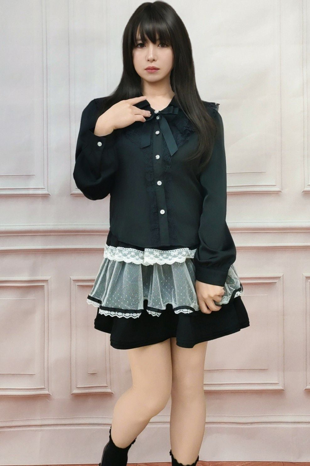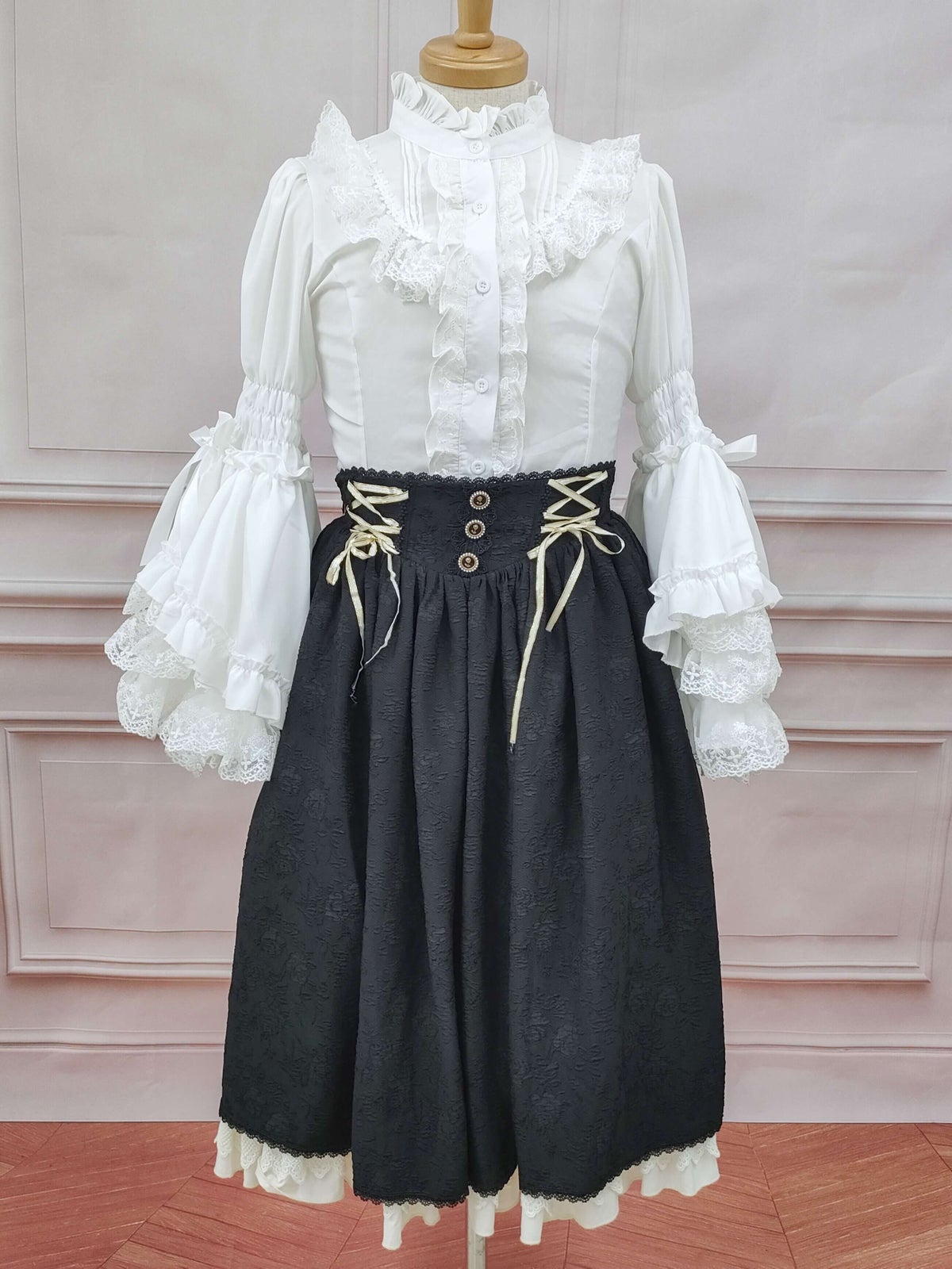 クラシックフリルロリータブラウス 黒 フリーサイズ