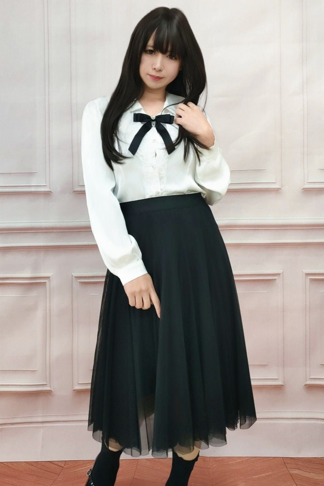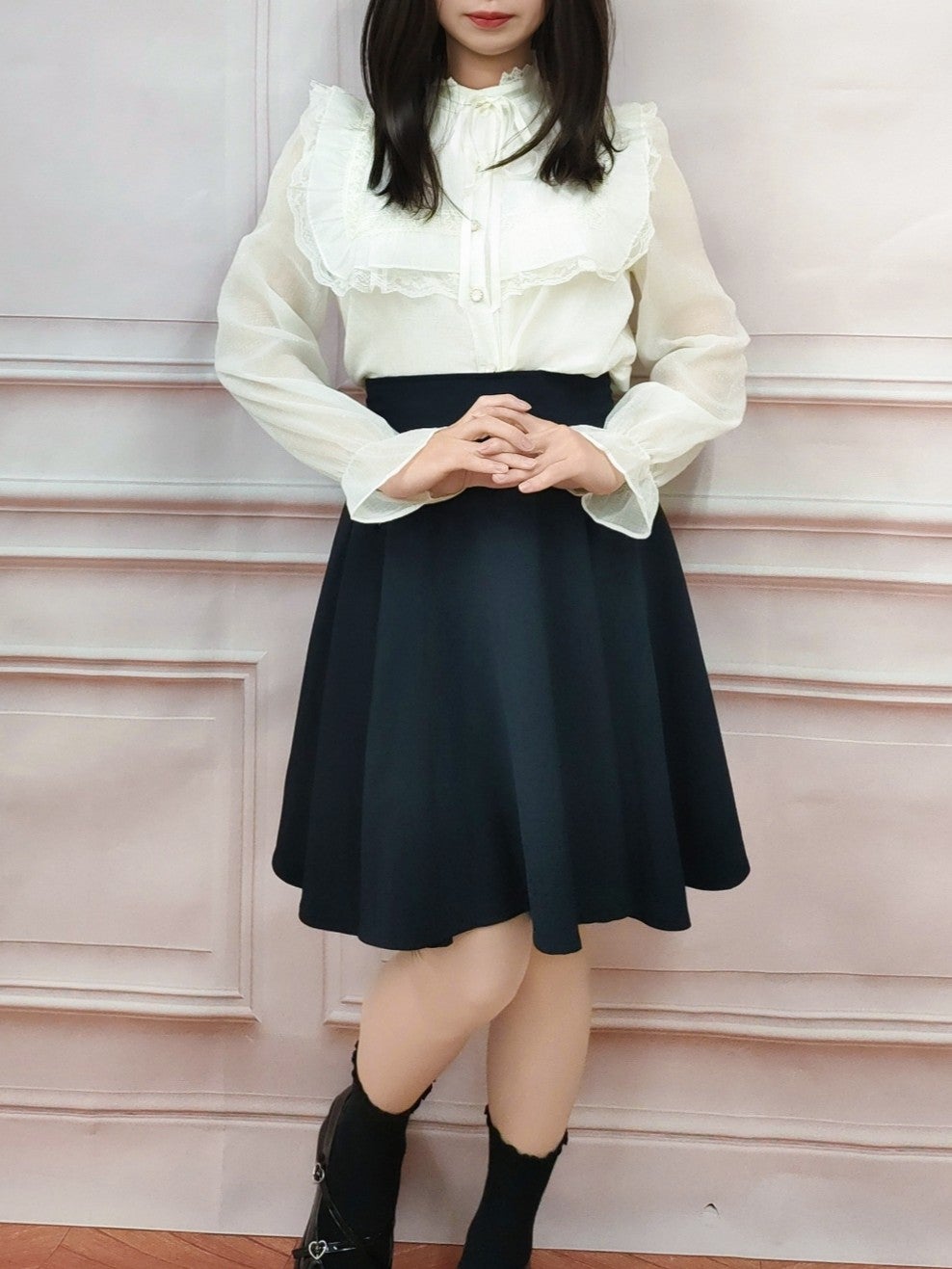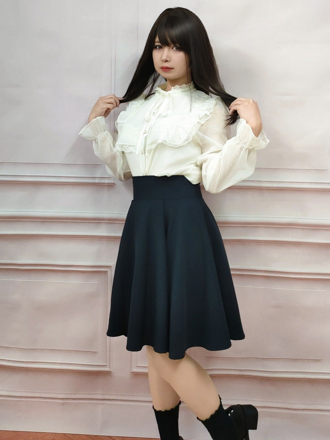 クラシックフリルロリータブラウス 黒 フリーサイズ