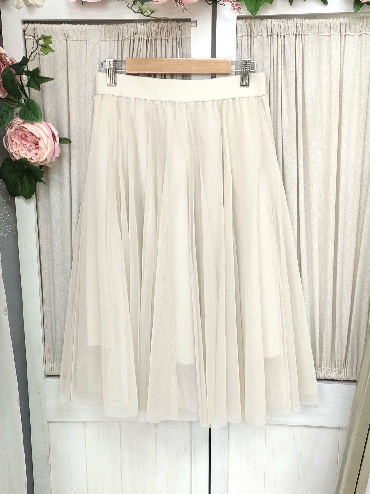 ミドル丈チュールスカート 白 フリーサイズ