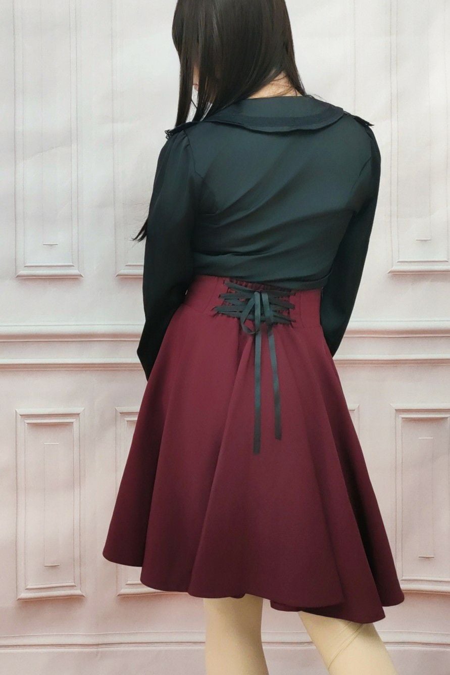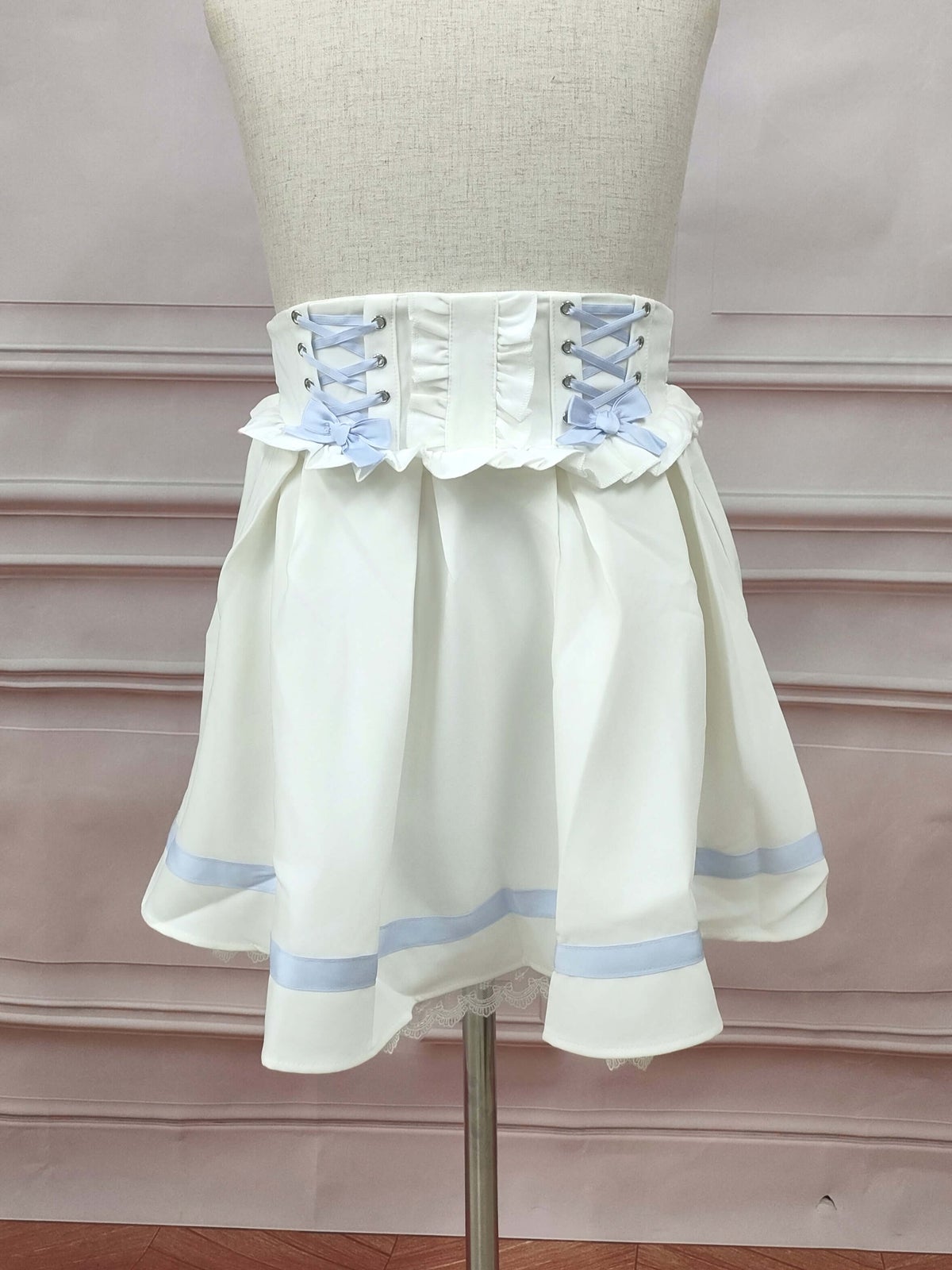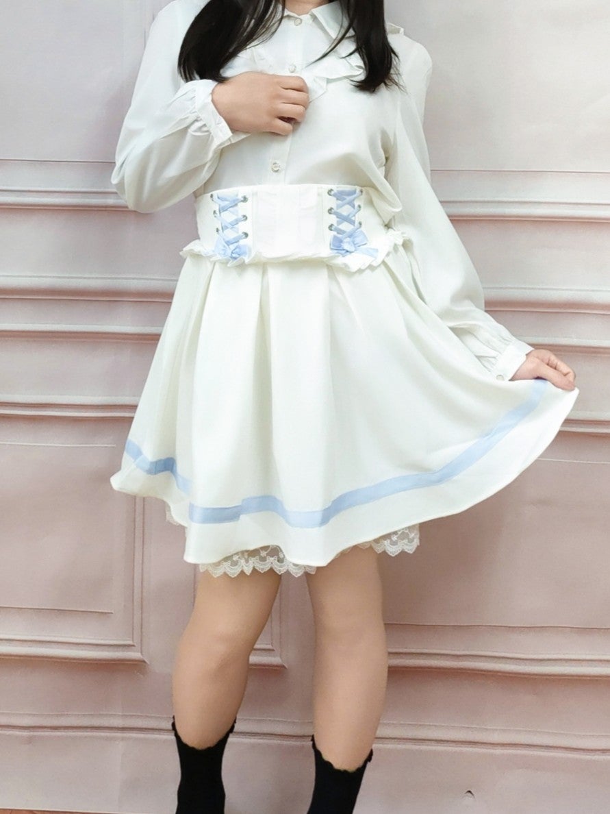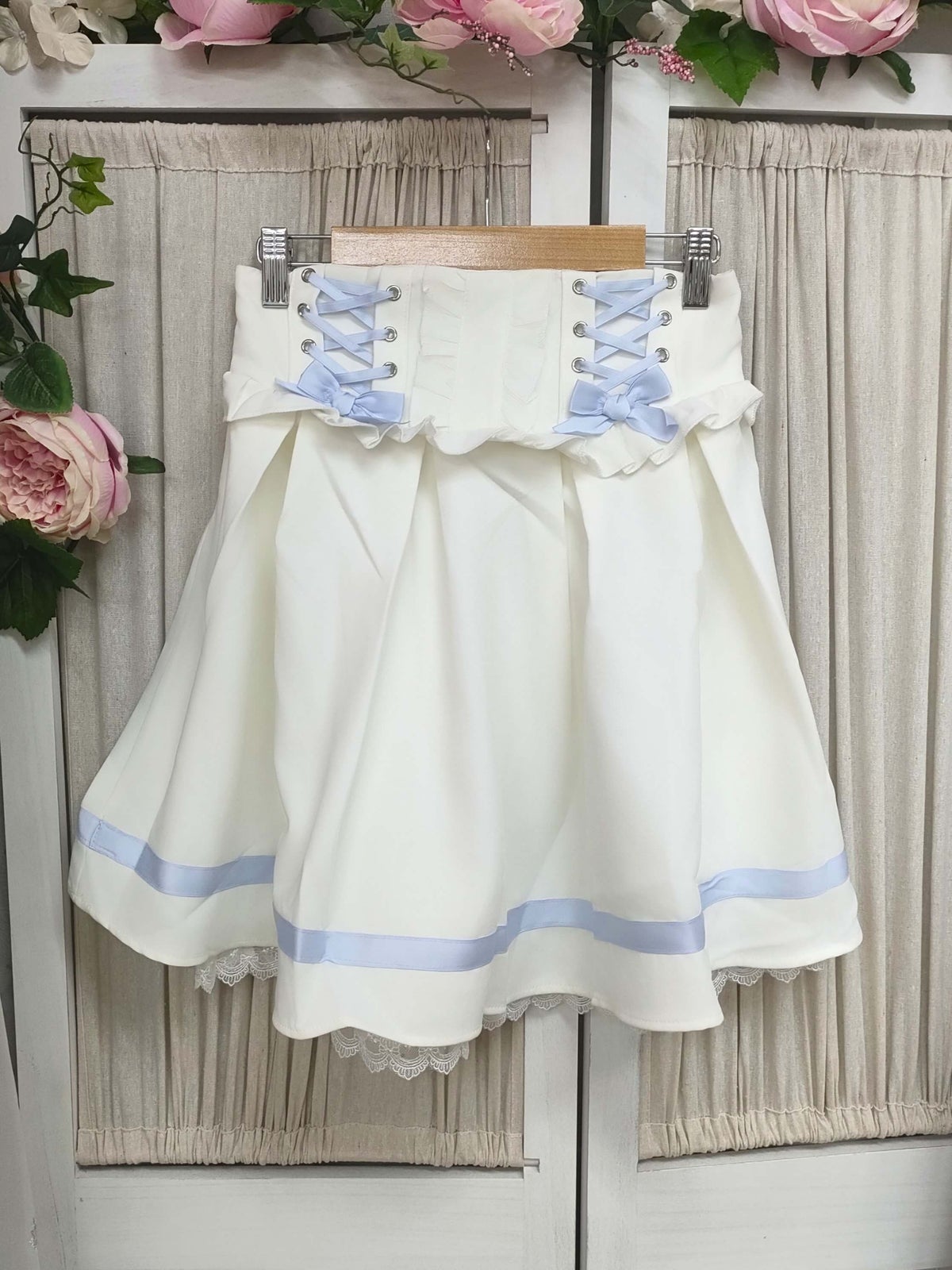 レースアップリボンフレアスカート 白