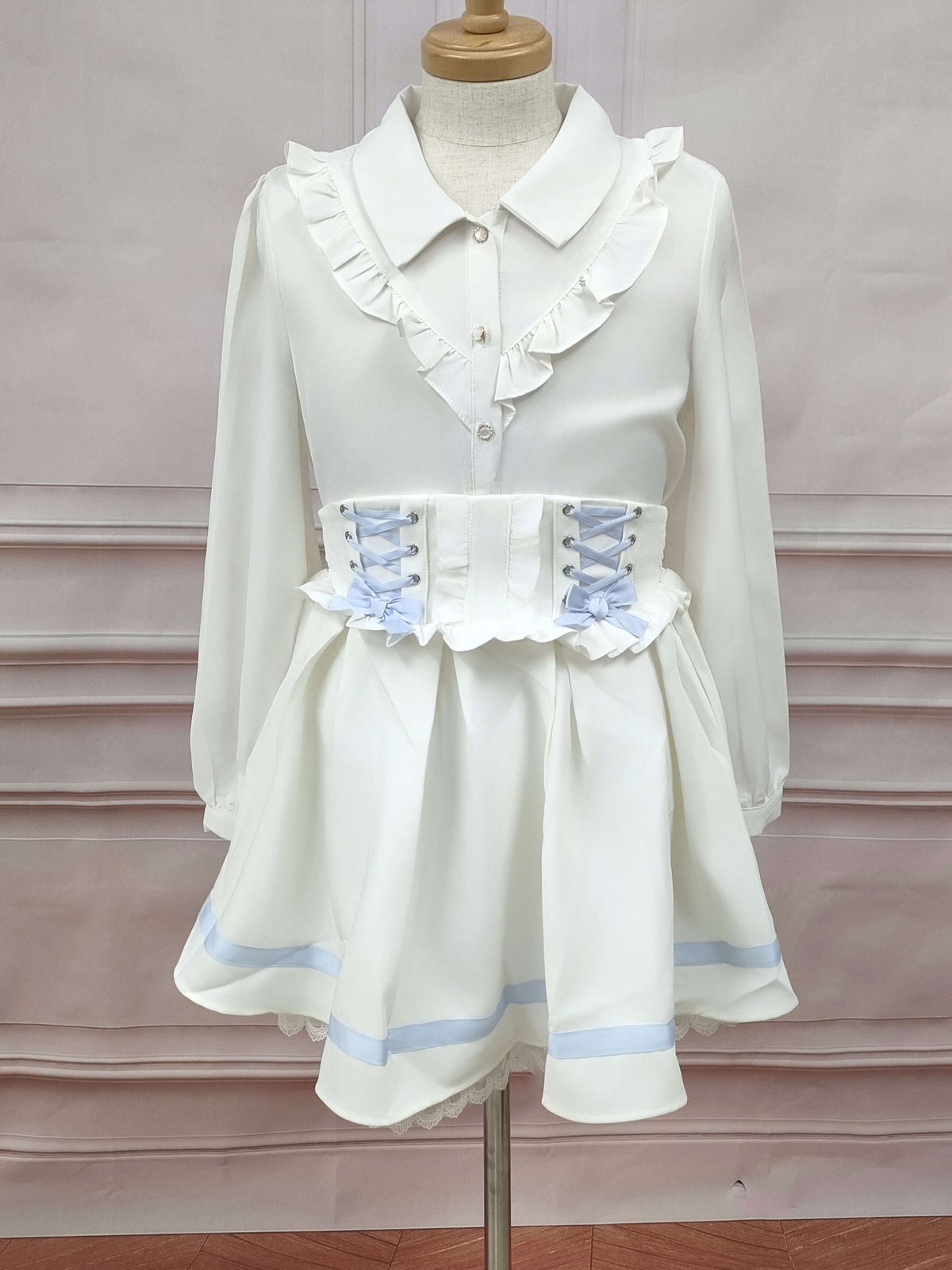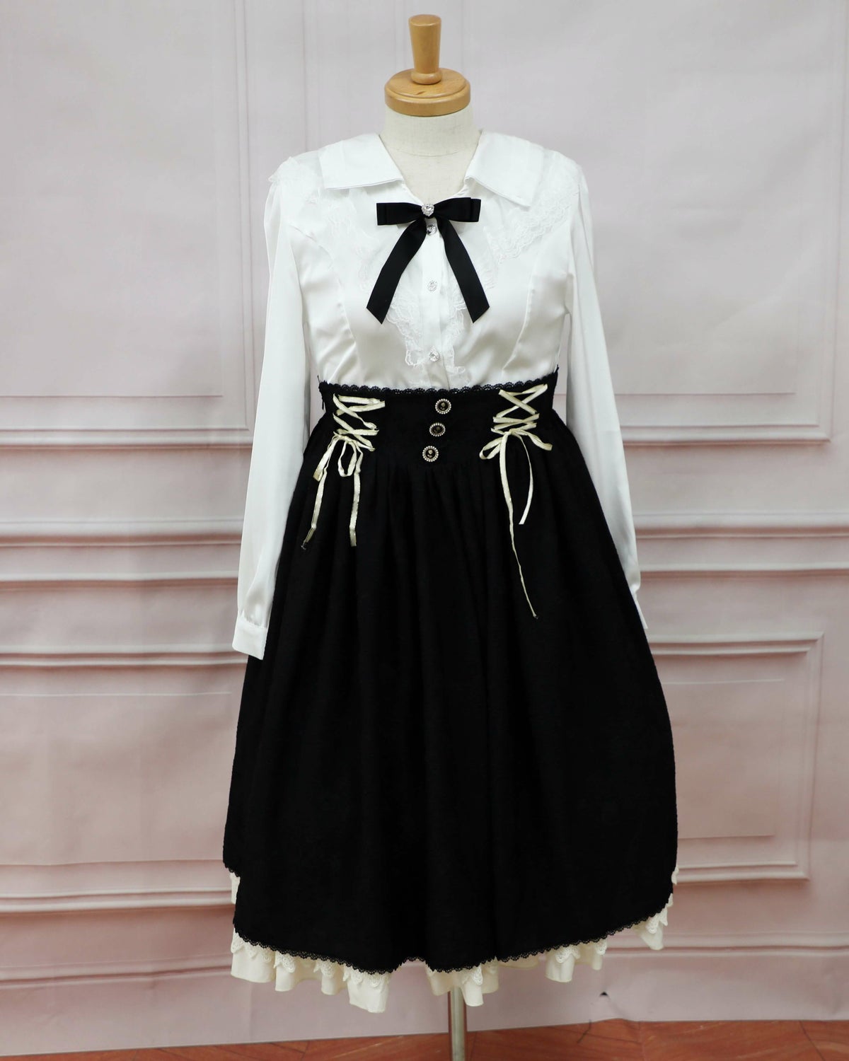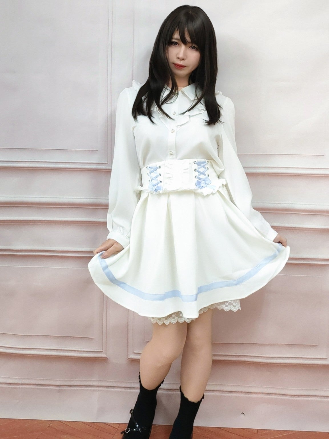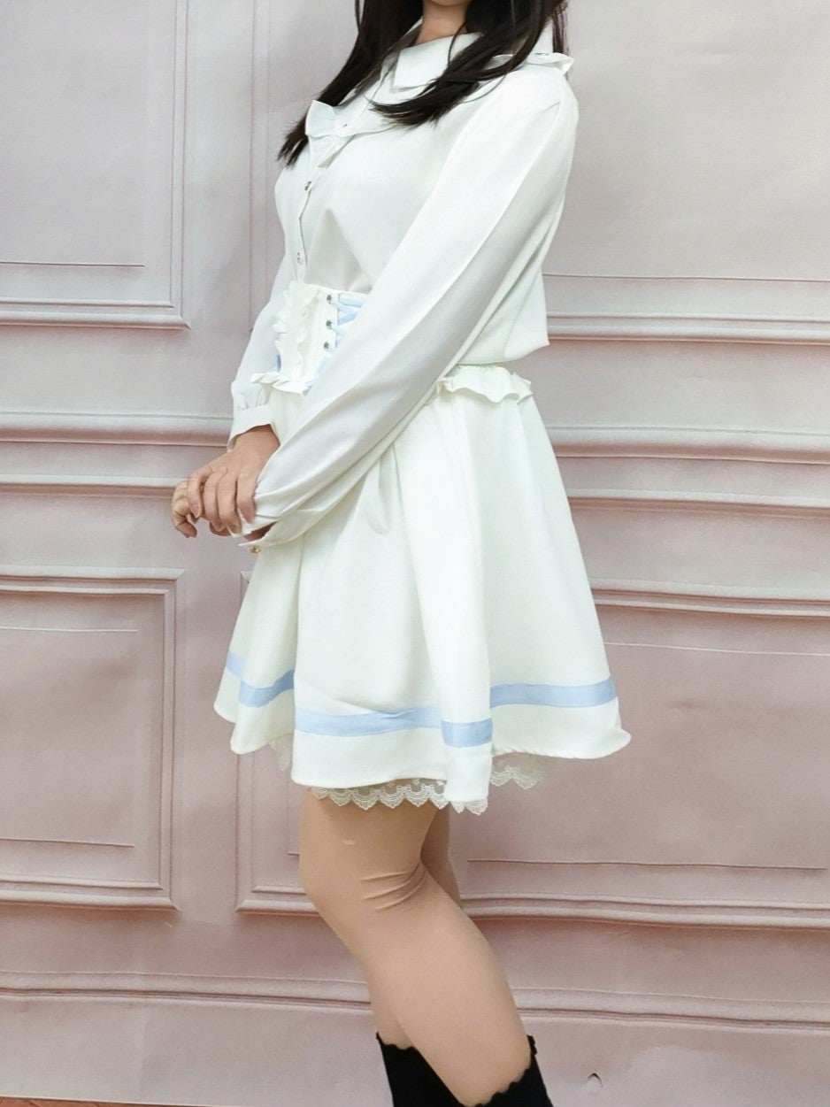 レースアップリボンフレアスカート 白
