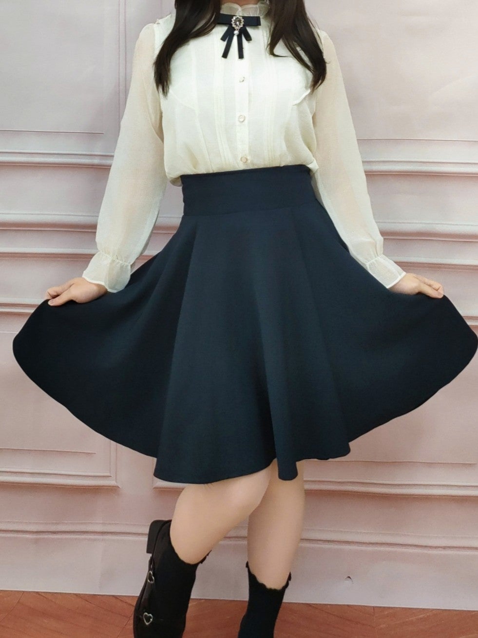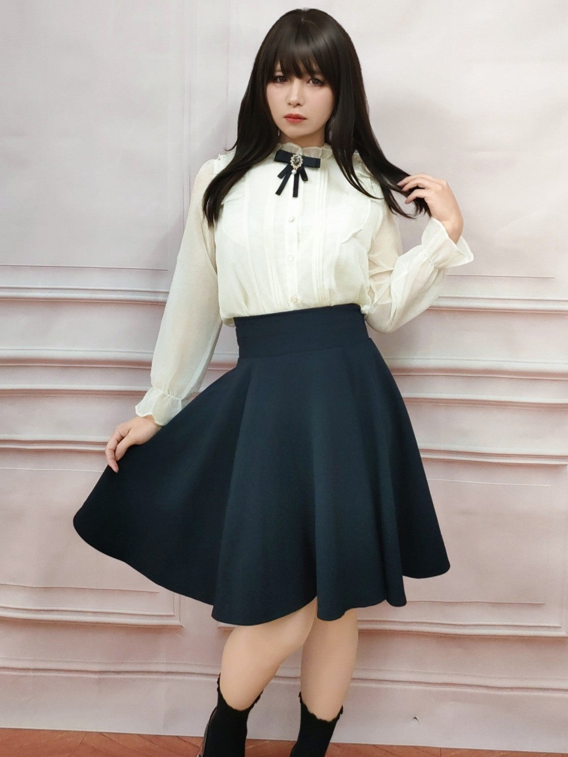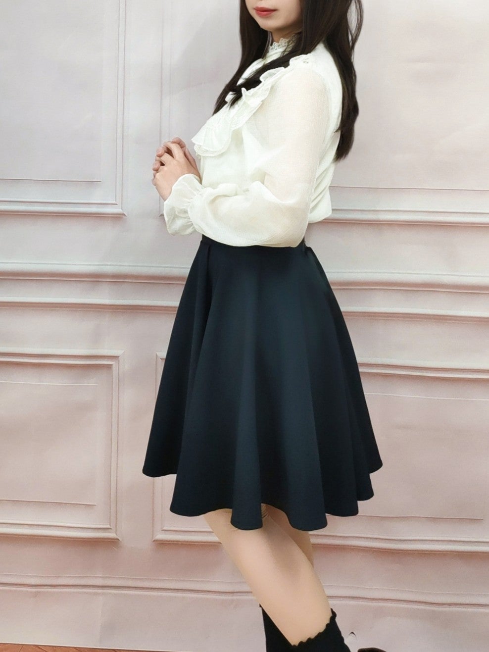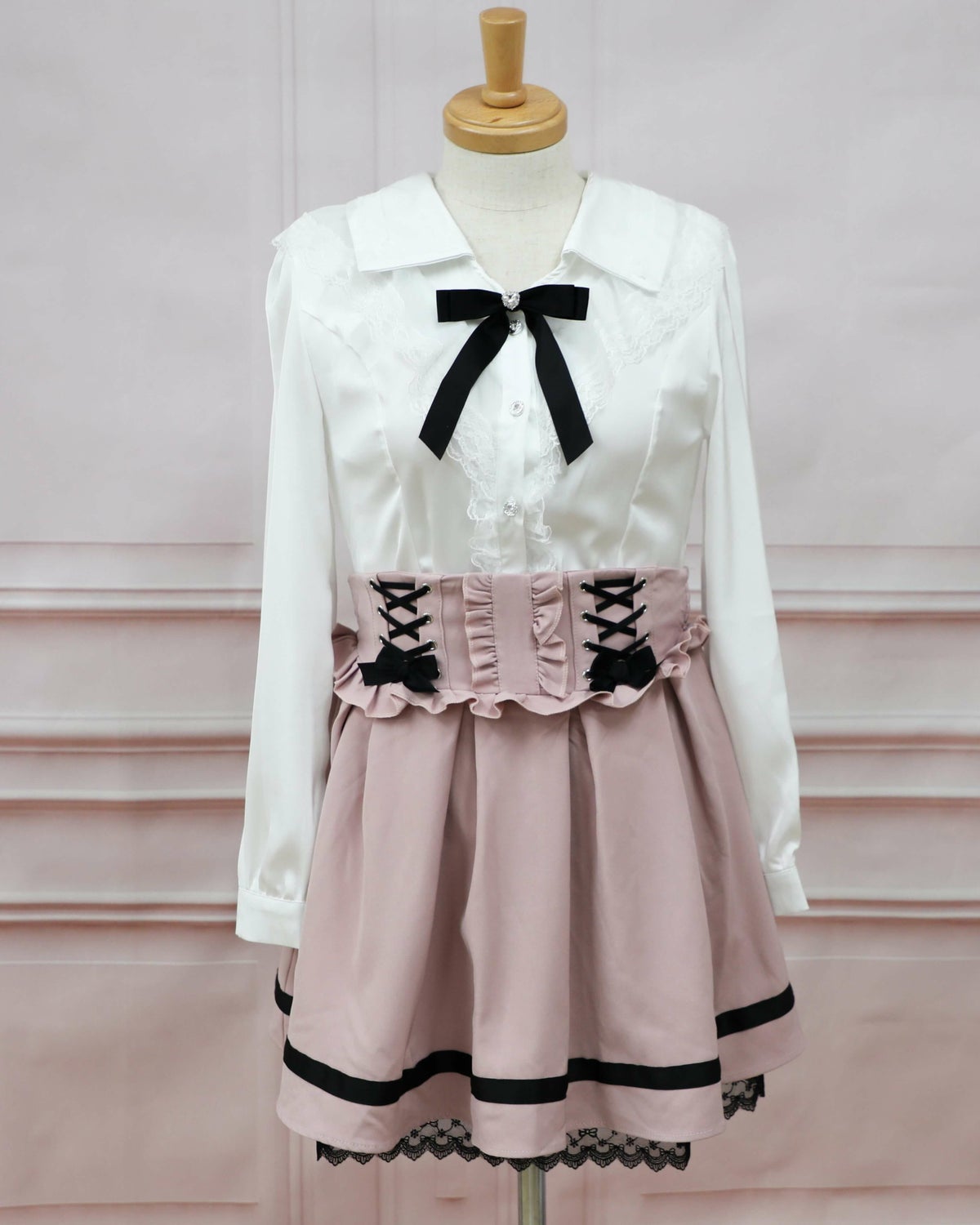 レースアップリボンフレアスカート 白