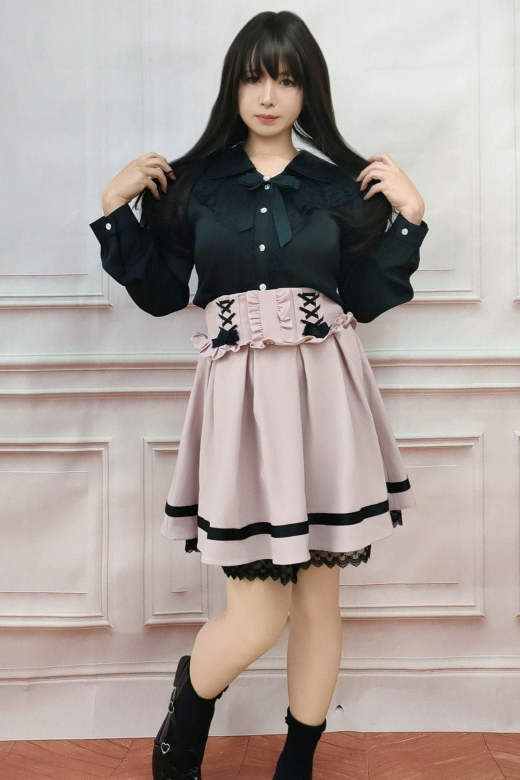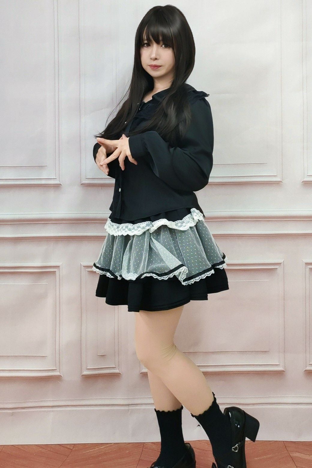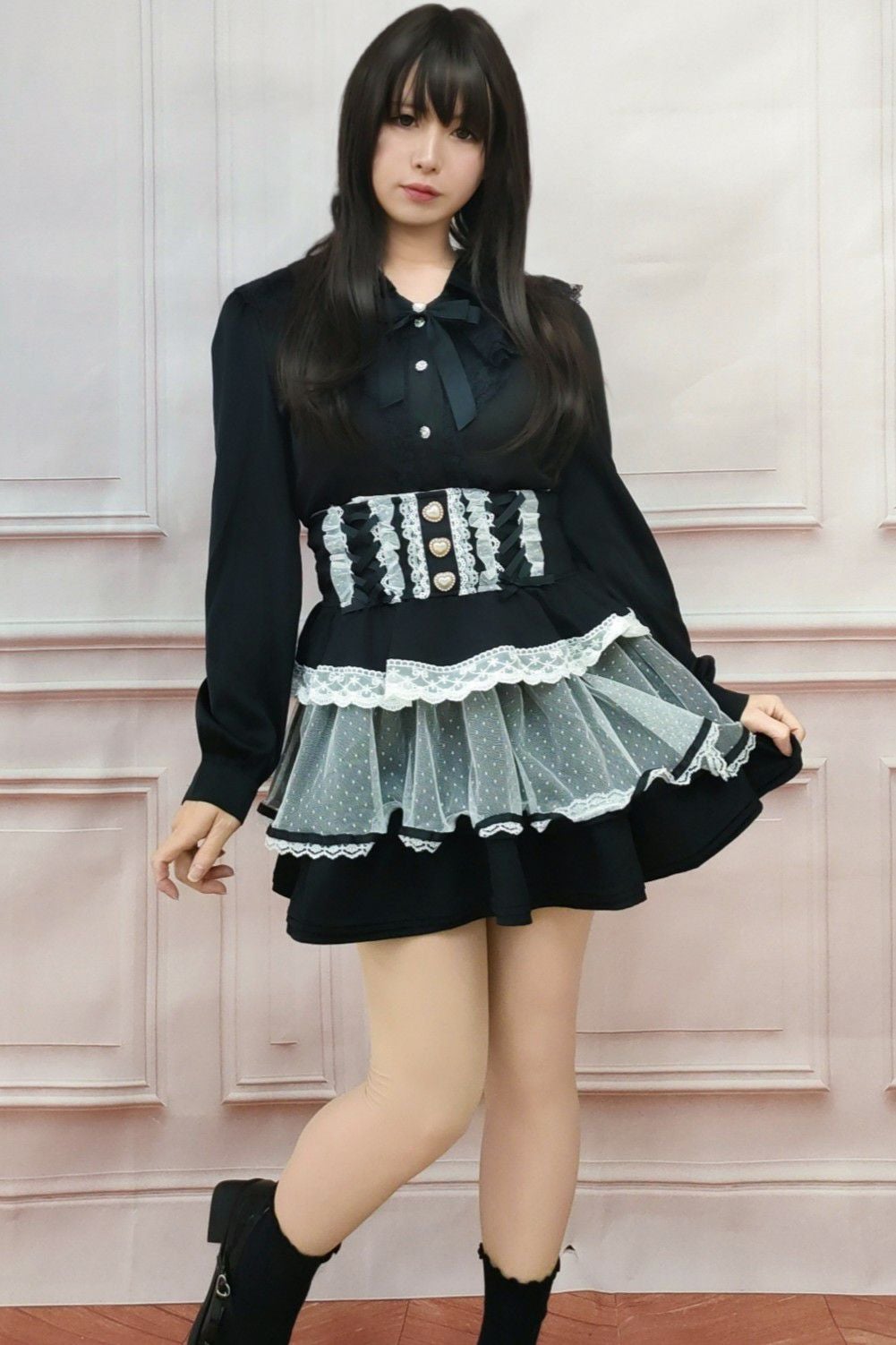 フリルロリータプルオーバートップス 黒 フリーサイズ
