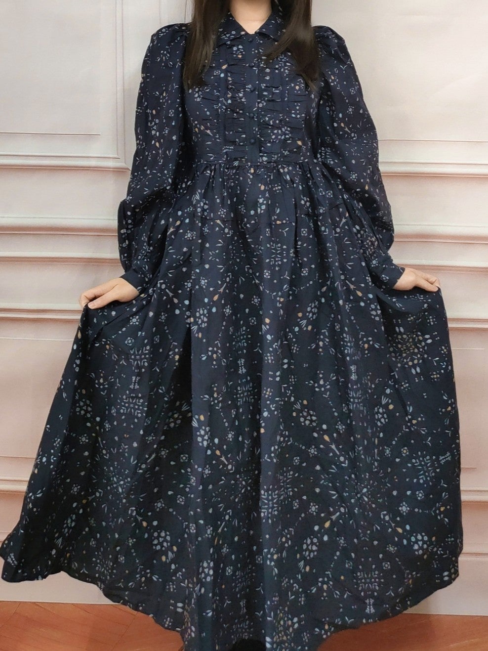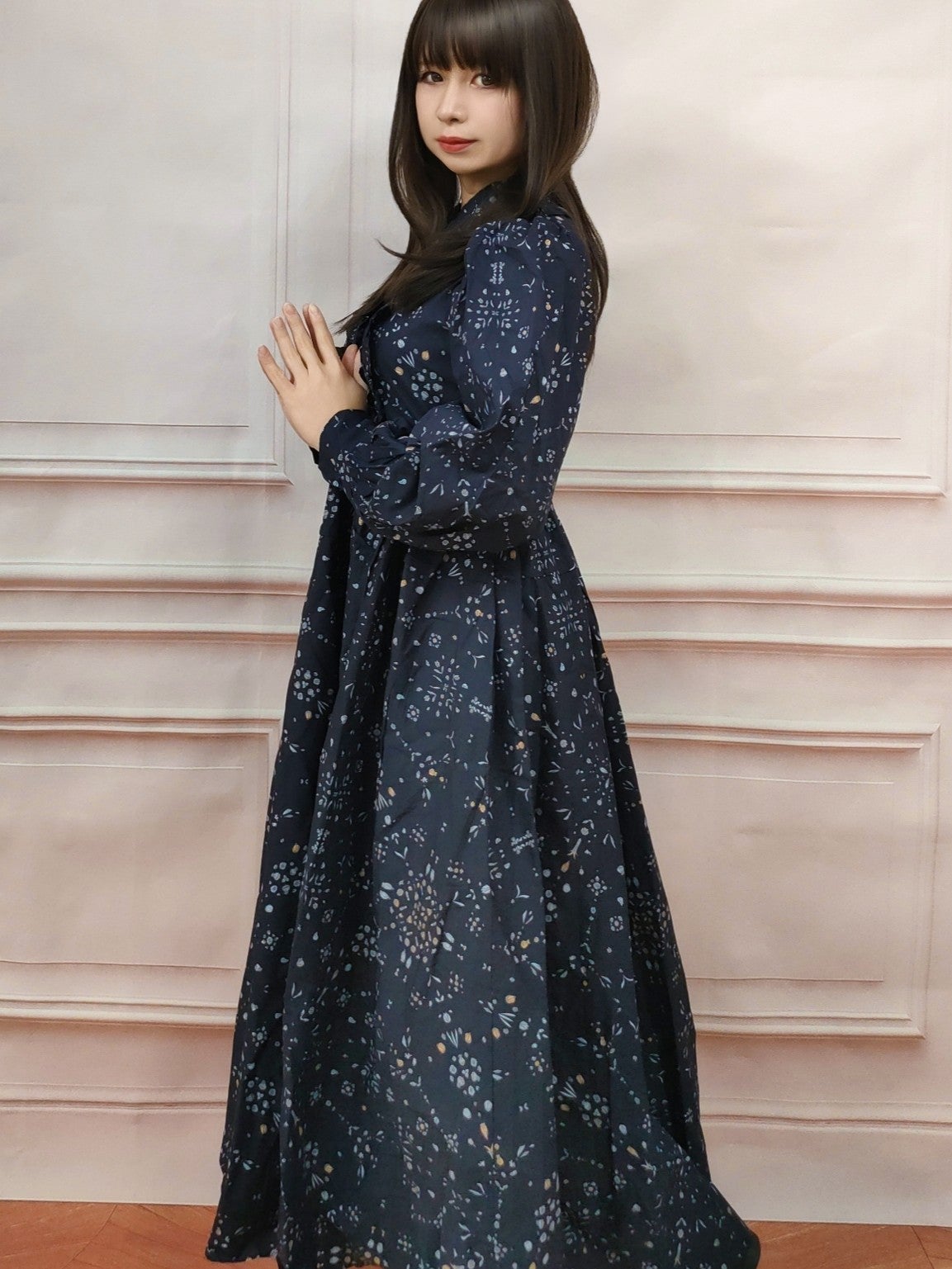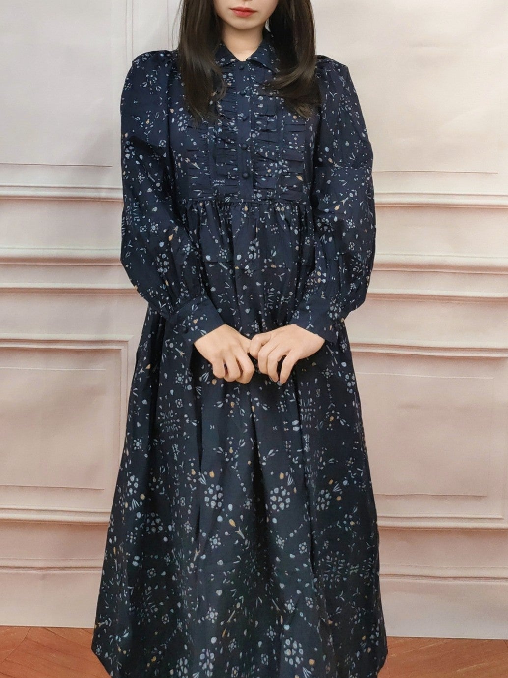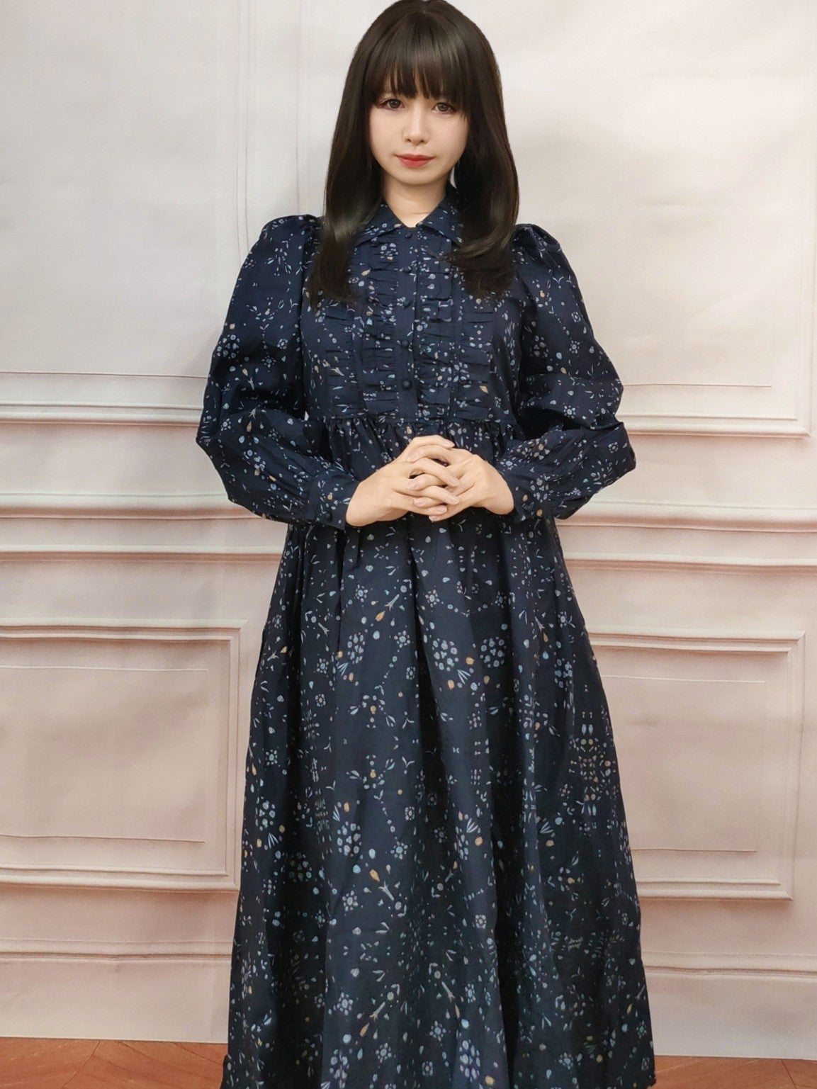 フリルカラーフラワーワンピース フリーサイズ