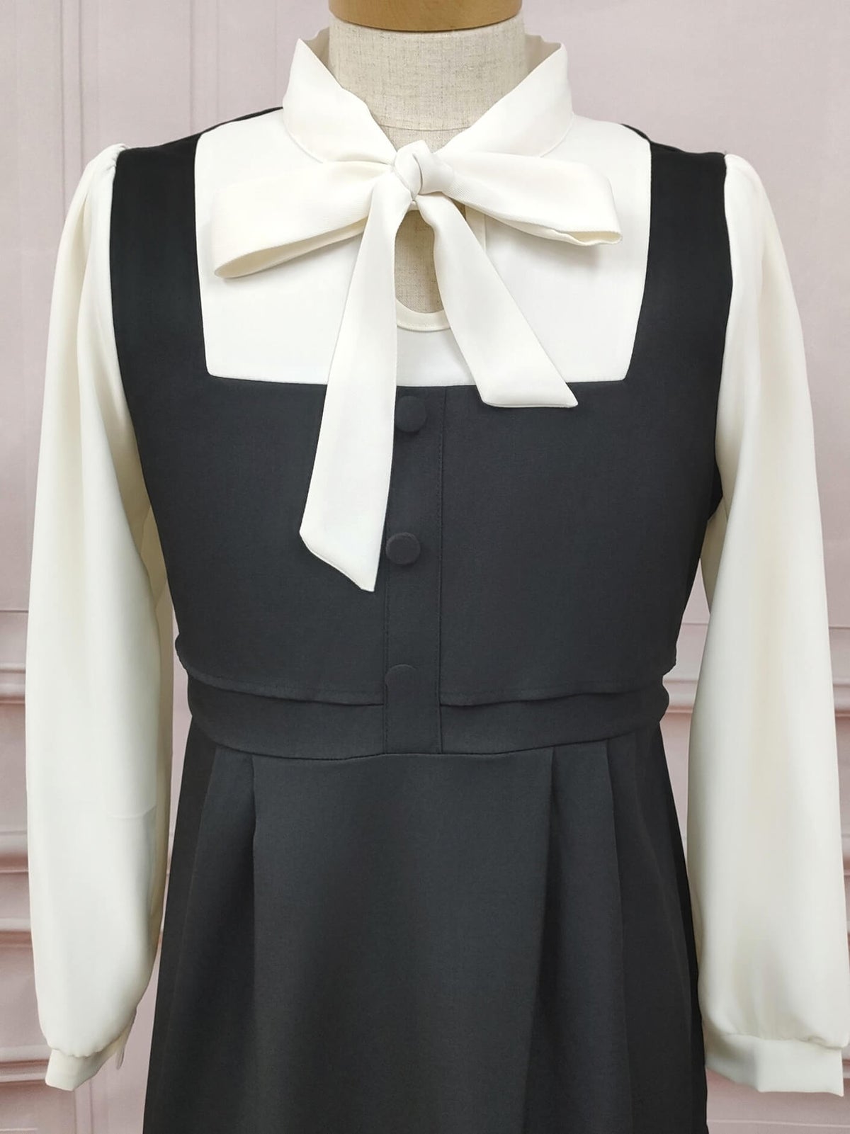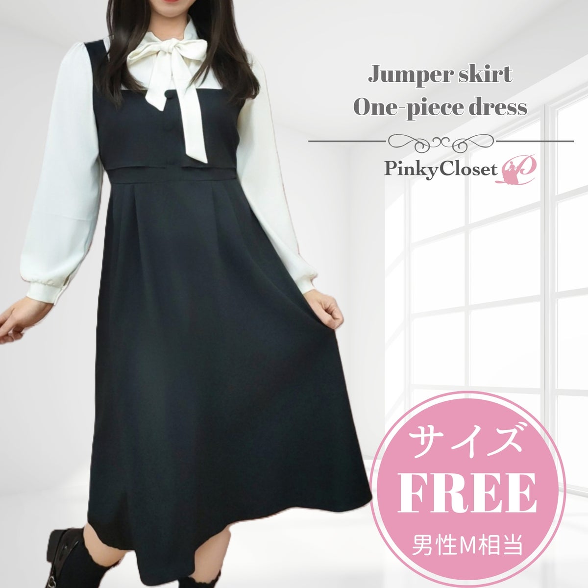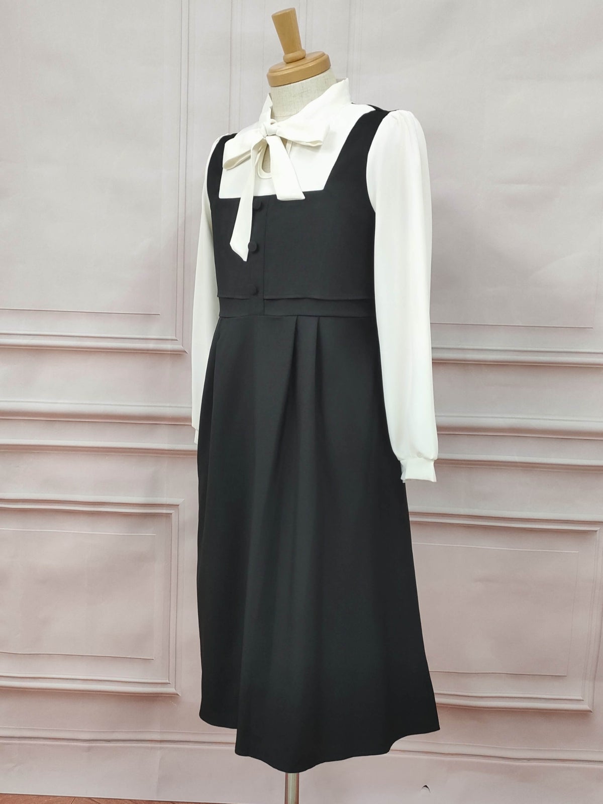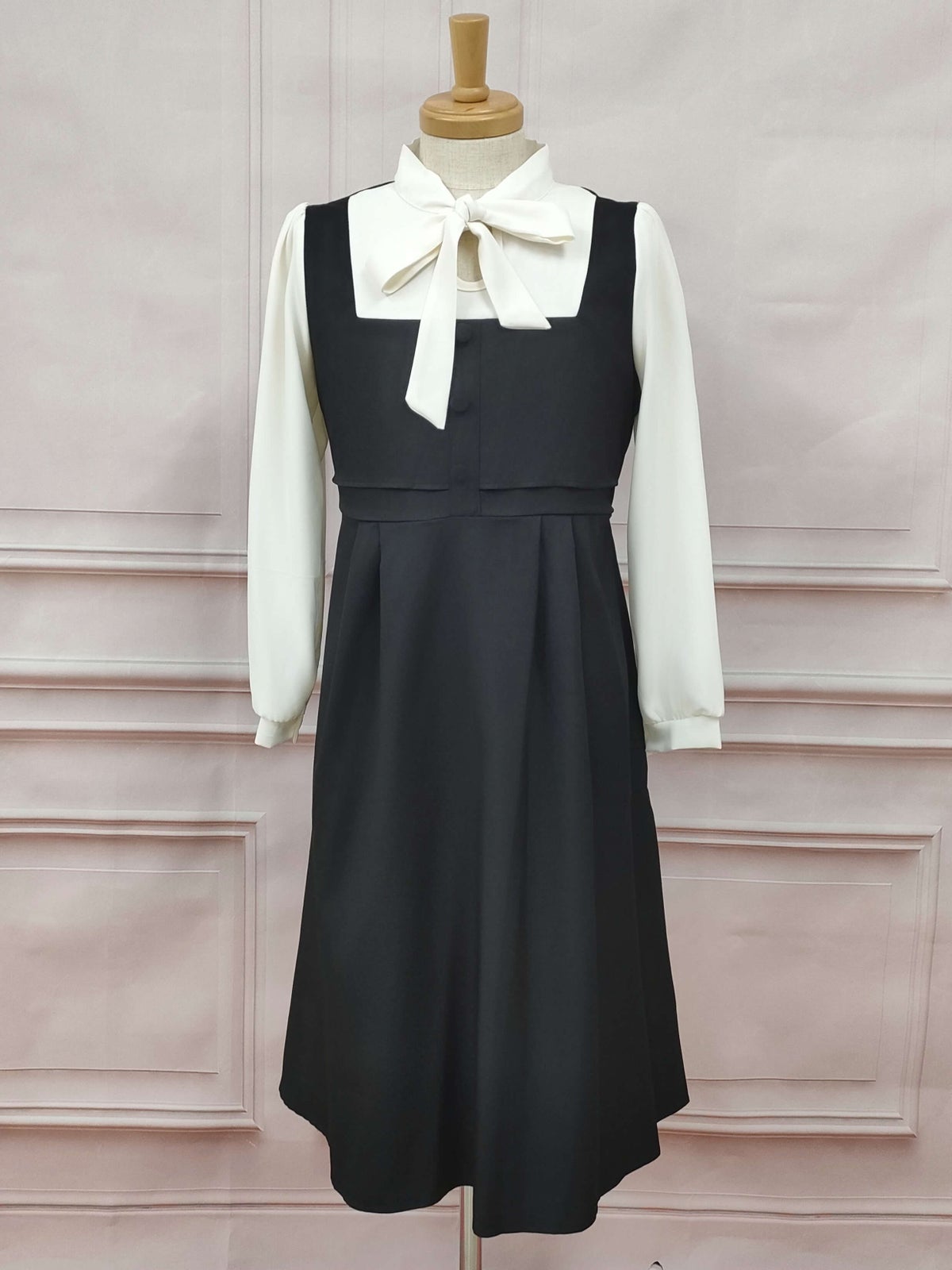 ボウタイジャンパースカート風ワンピース ブラック フリーサイズ