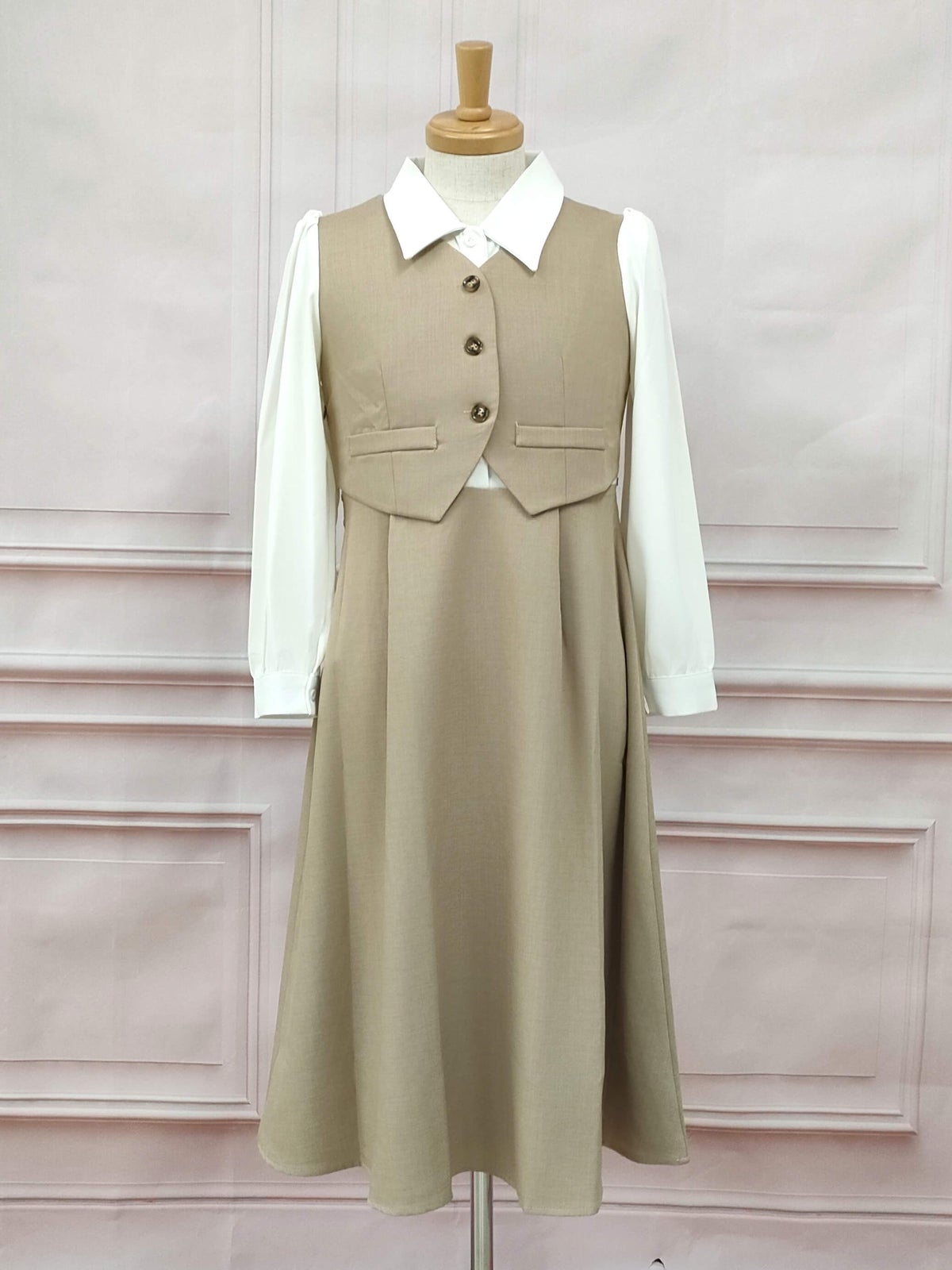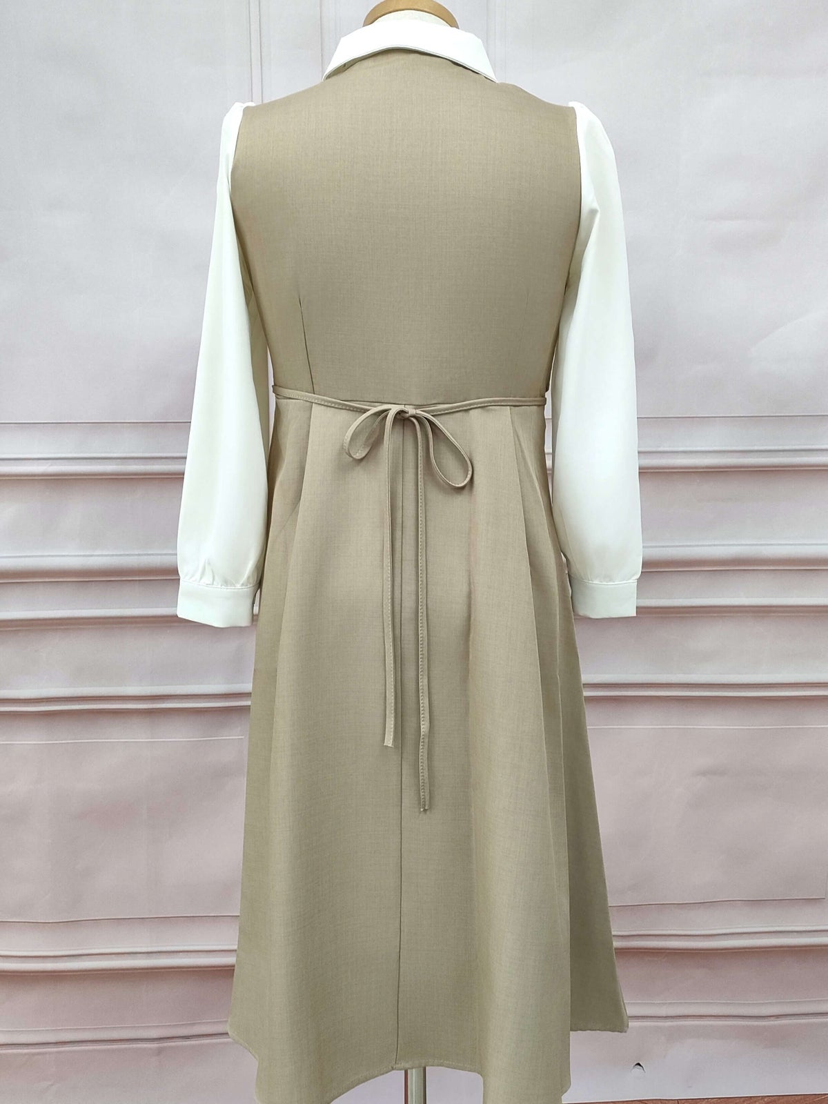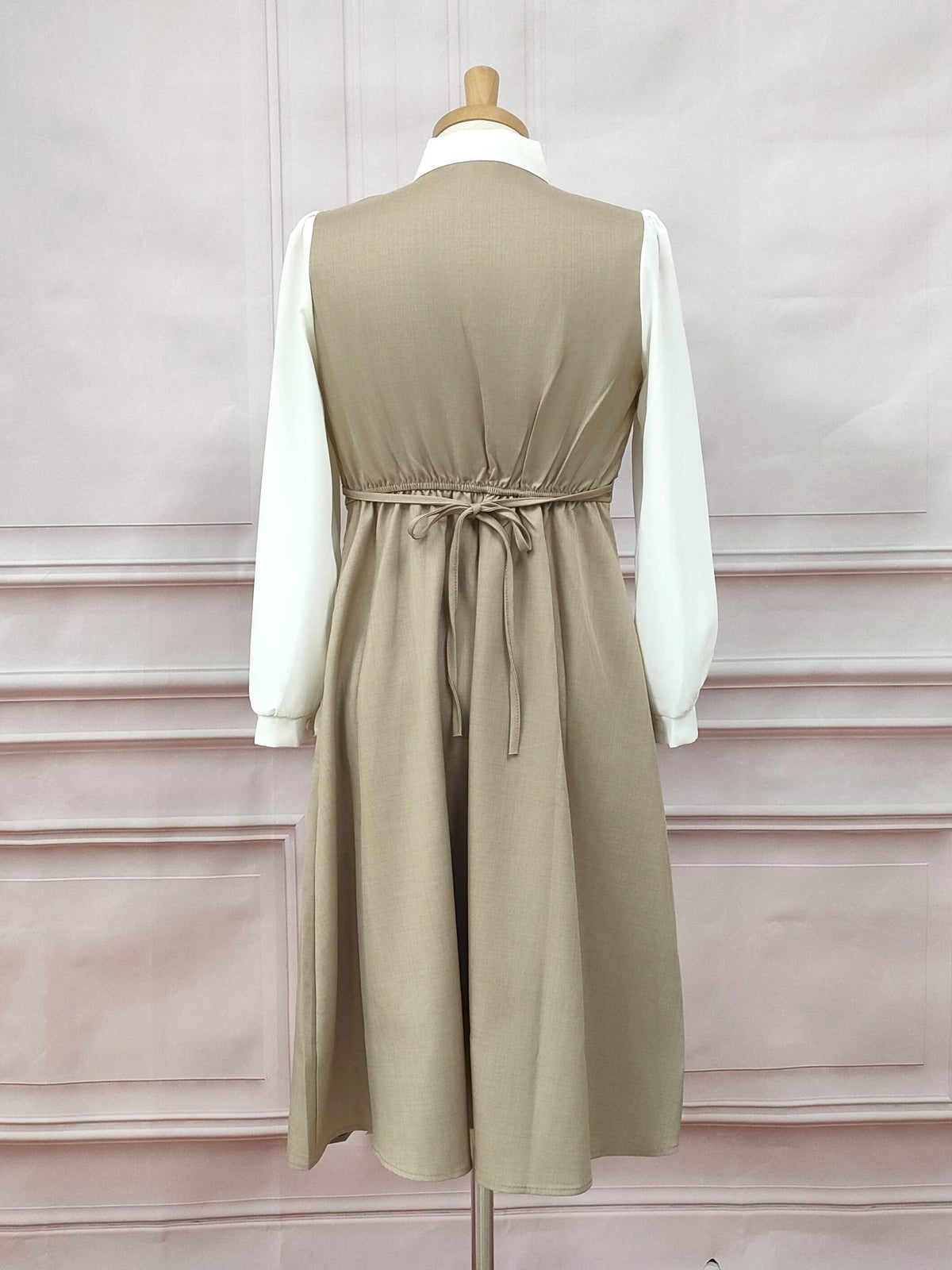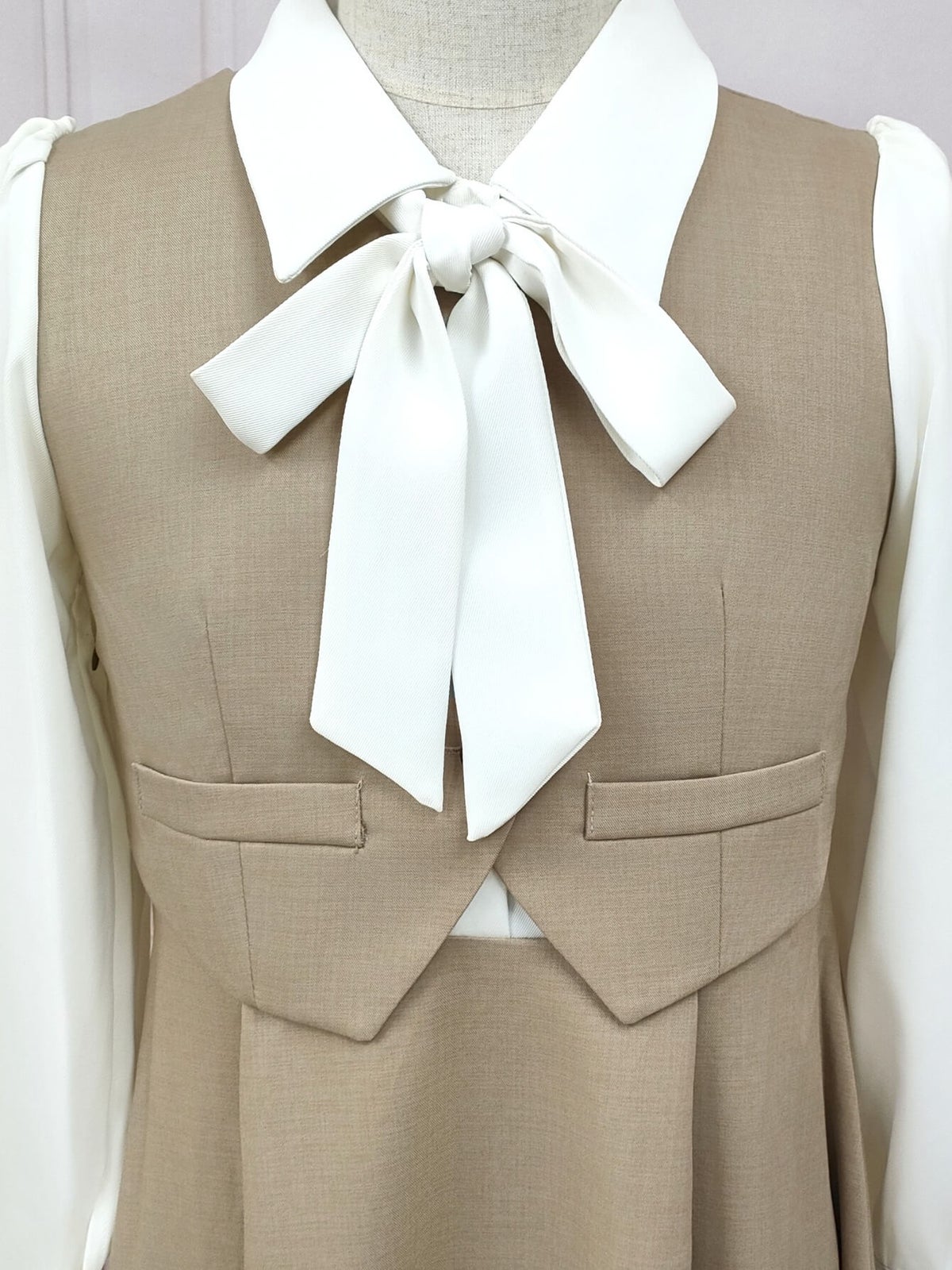 ボウタイセットアップ風ワンピース ブラウン フリーサイズ