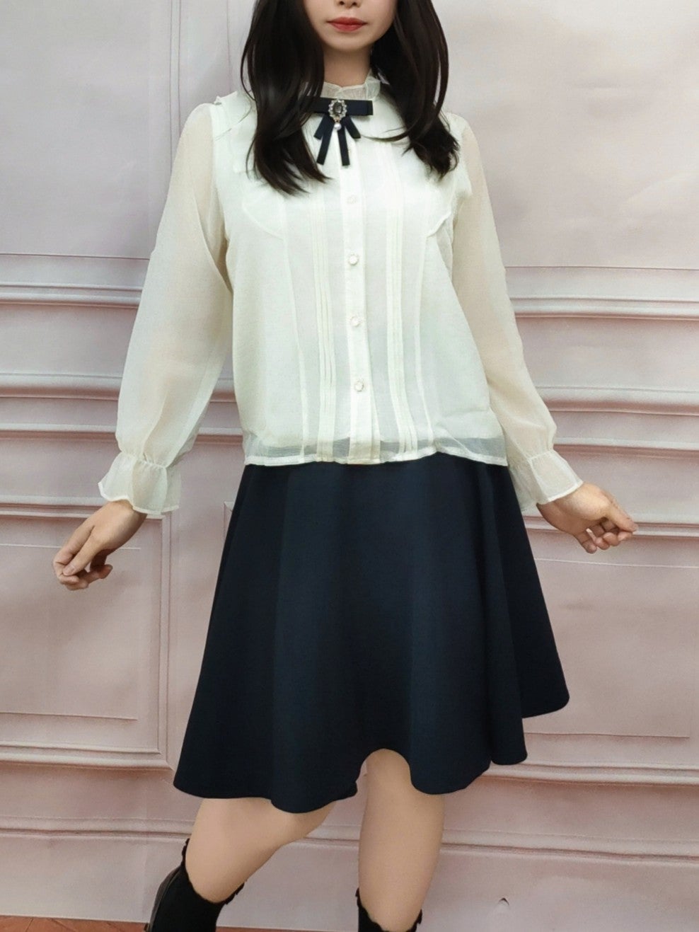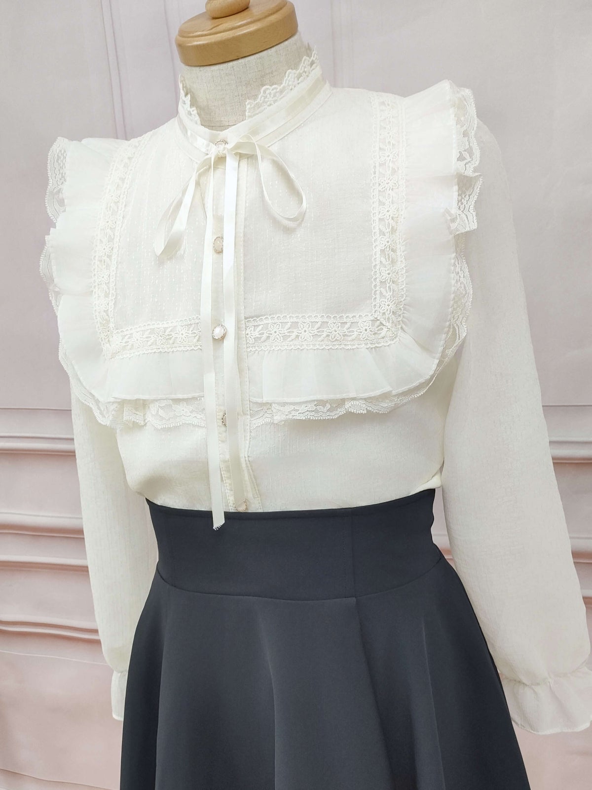 ヨークフリルリボンブラウス フリーサイズ