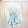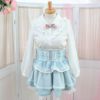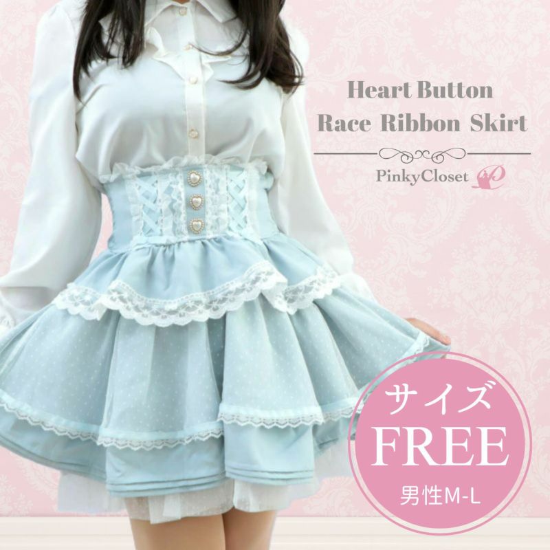 3. ハートボタンレースアッププリンセスミニスカート 水色