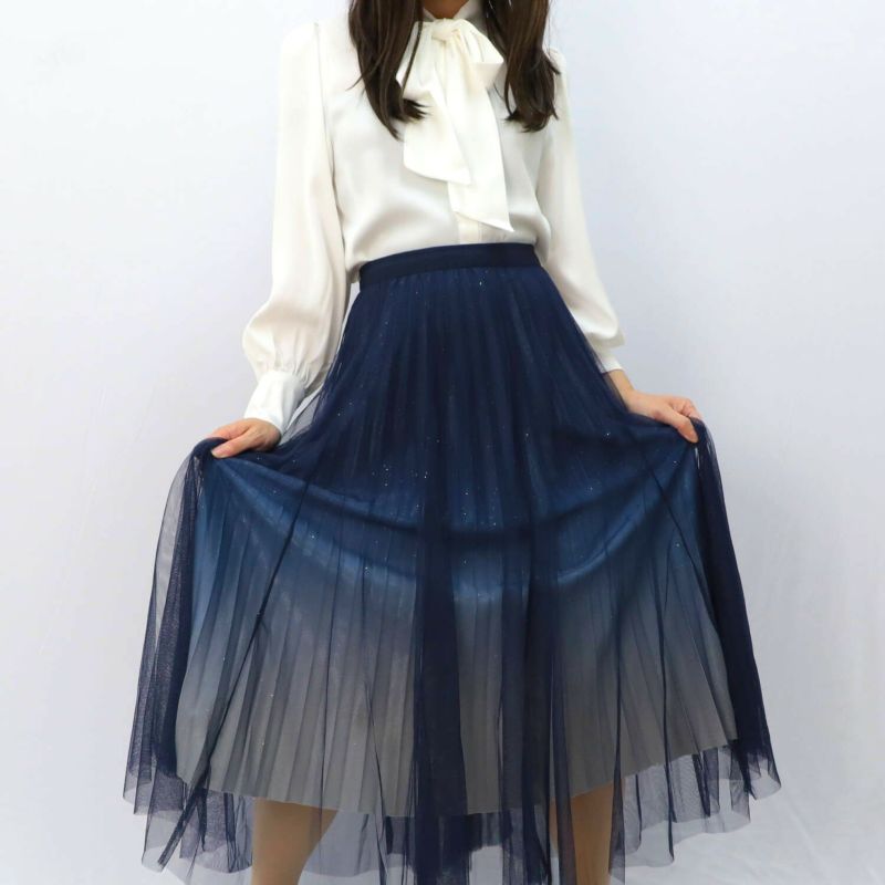 チュール生地の下のプリーツ部分がグラデーションカラーになっていてお洒落なチュールスカートになっています。