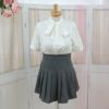 お洒落な切り替えのついたプリーツのミニスカートでシンプル可愛い一着。