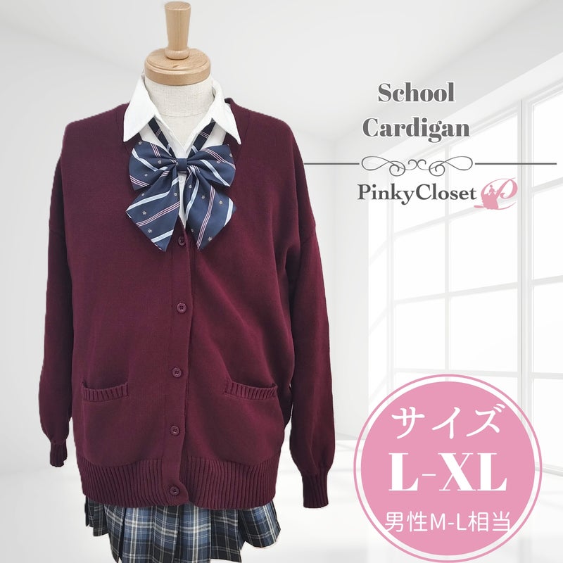 可愛く見えるスクールカーディガン ワインレッド