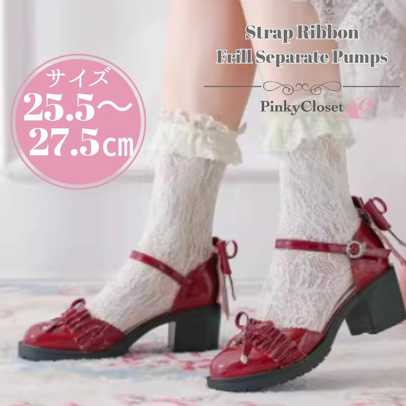 リボンやフリルがたっぷりのガーリーなセパレートパンプス。