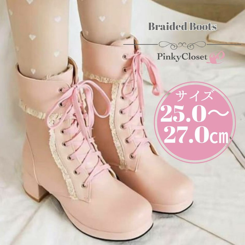編み上げブーツ005 ピンク