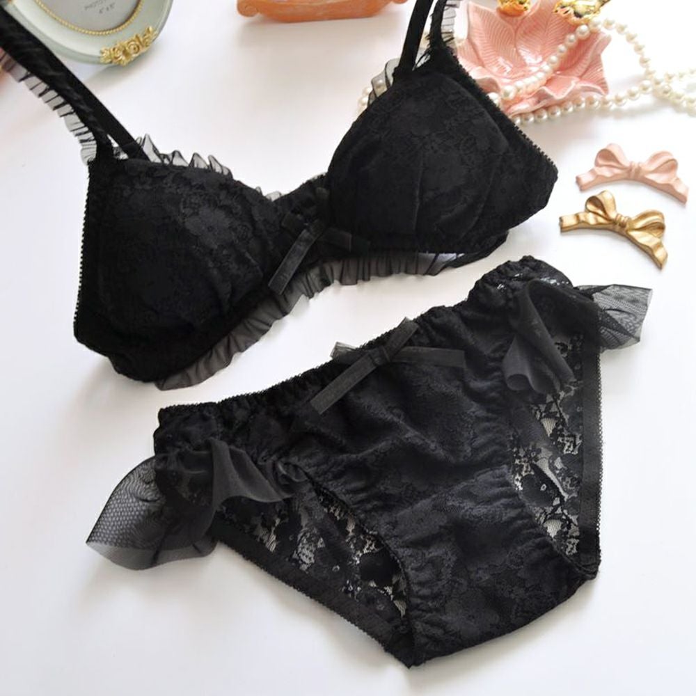 ノンワイヤー三角ブラショーツセット01黒 フリーサイズ