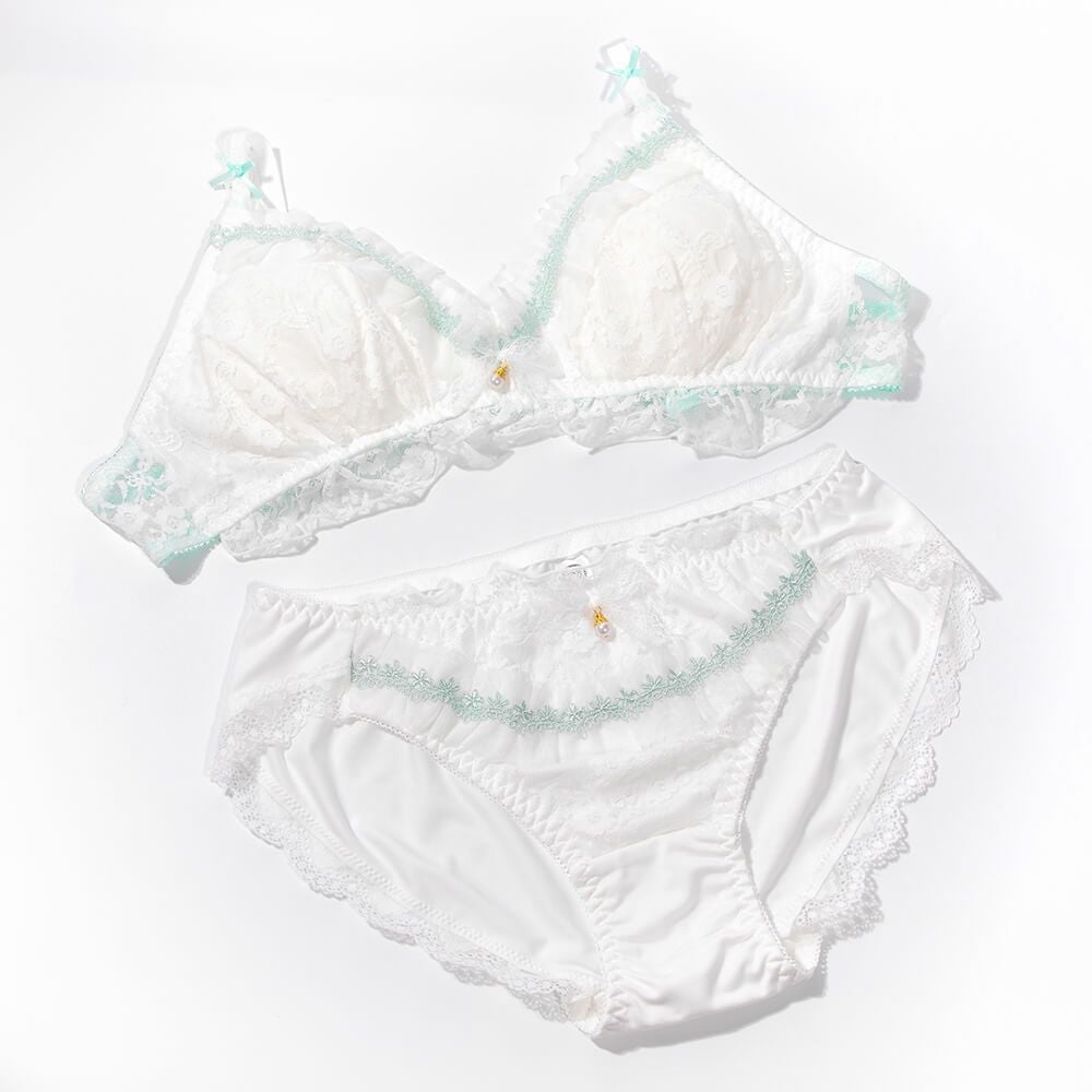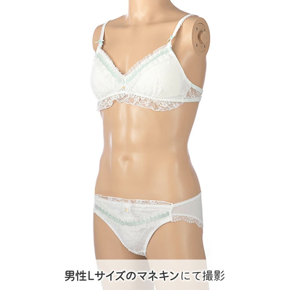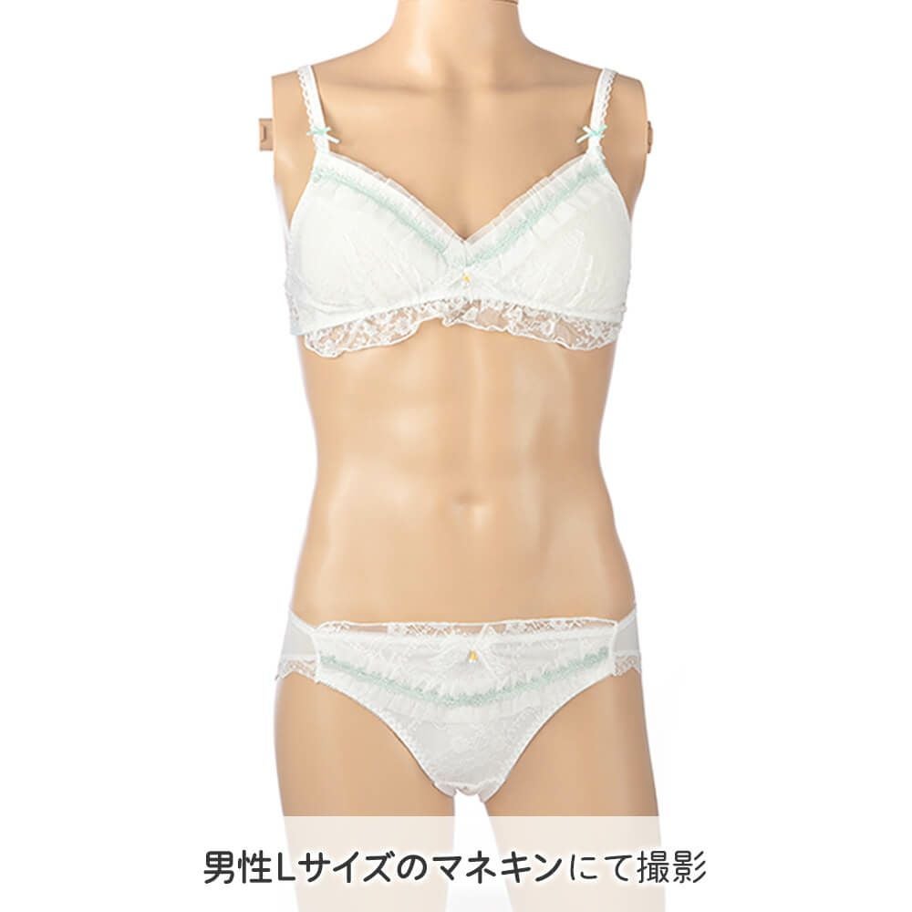ノンワイヤー三角ブラショーツセット03白×緑 M