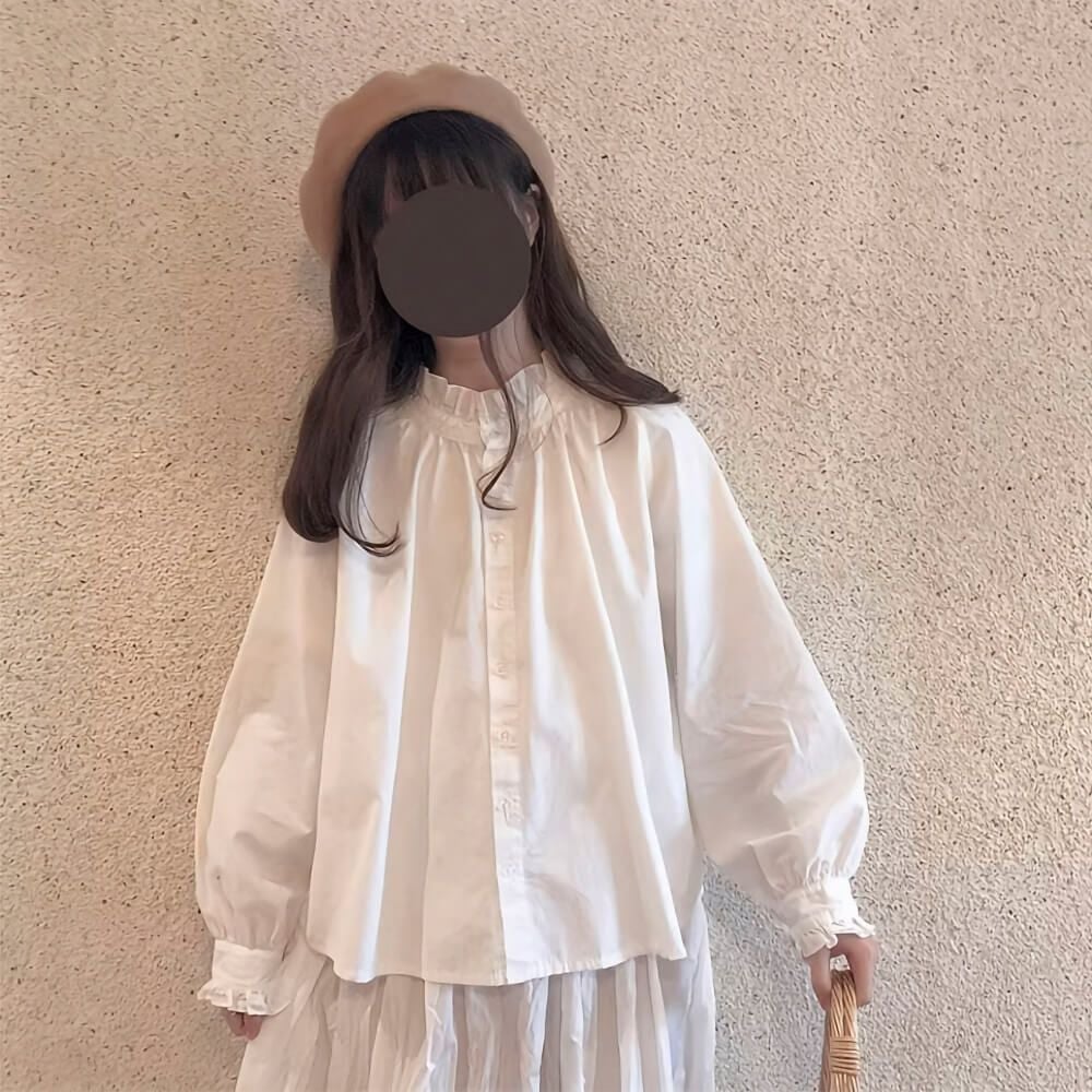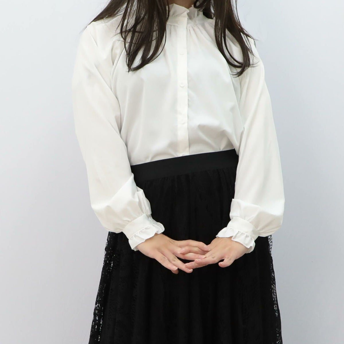 袖口2WAY長袖フリルシフォンブラウス 黒